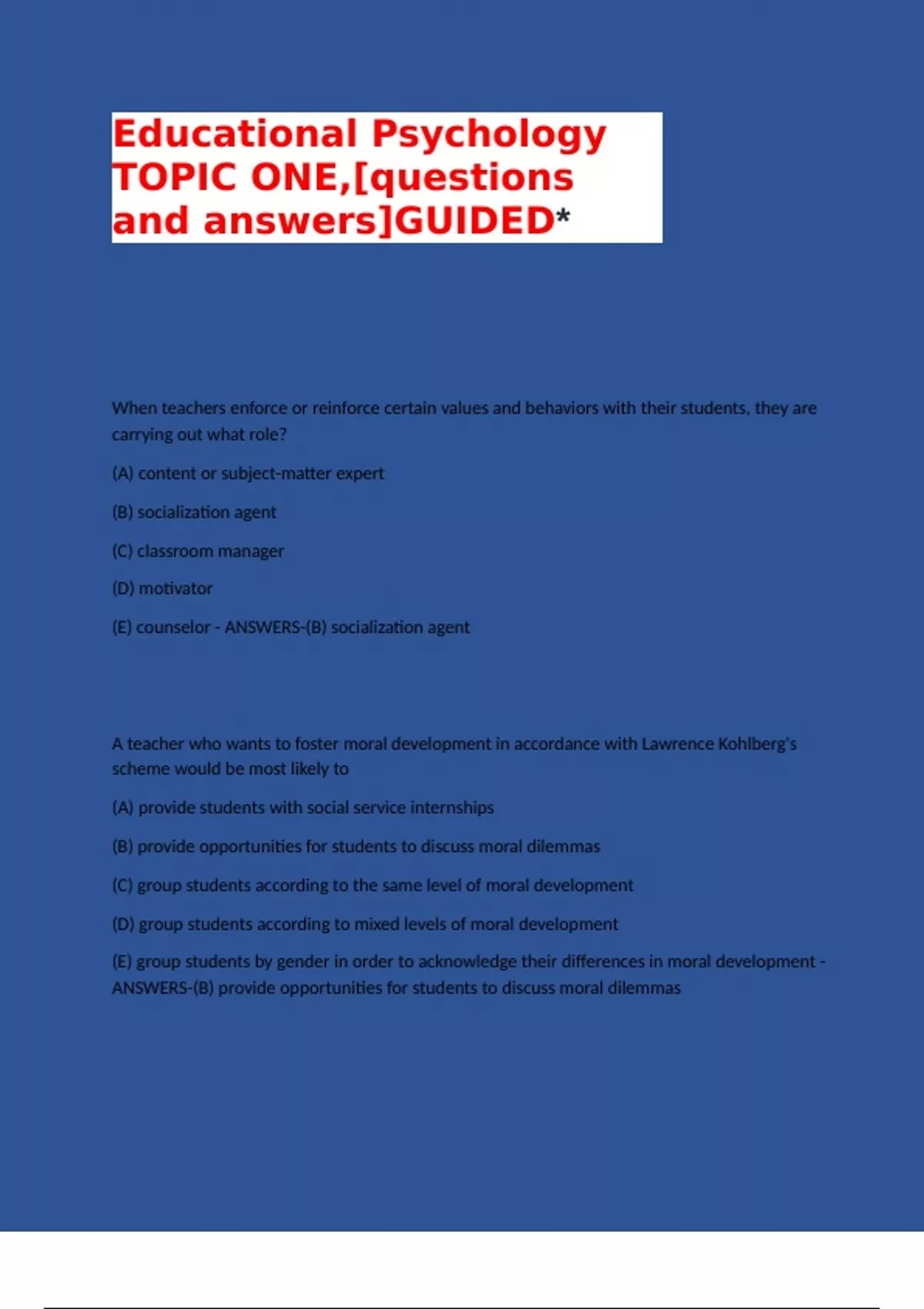 Educational Psychology TOPIC ONE,[questions and answers]GUIDED*