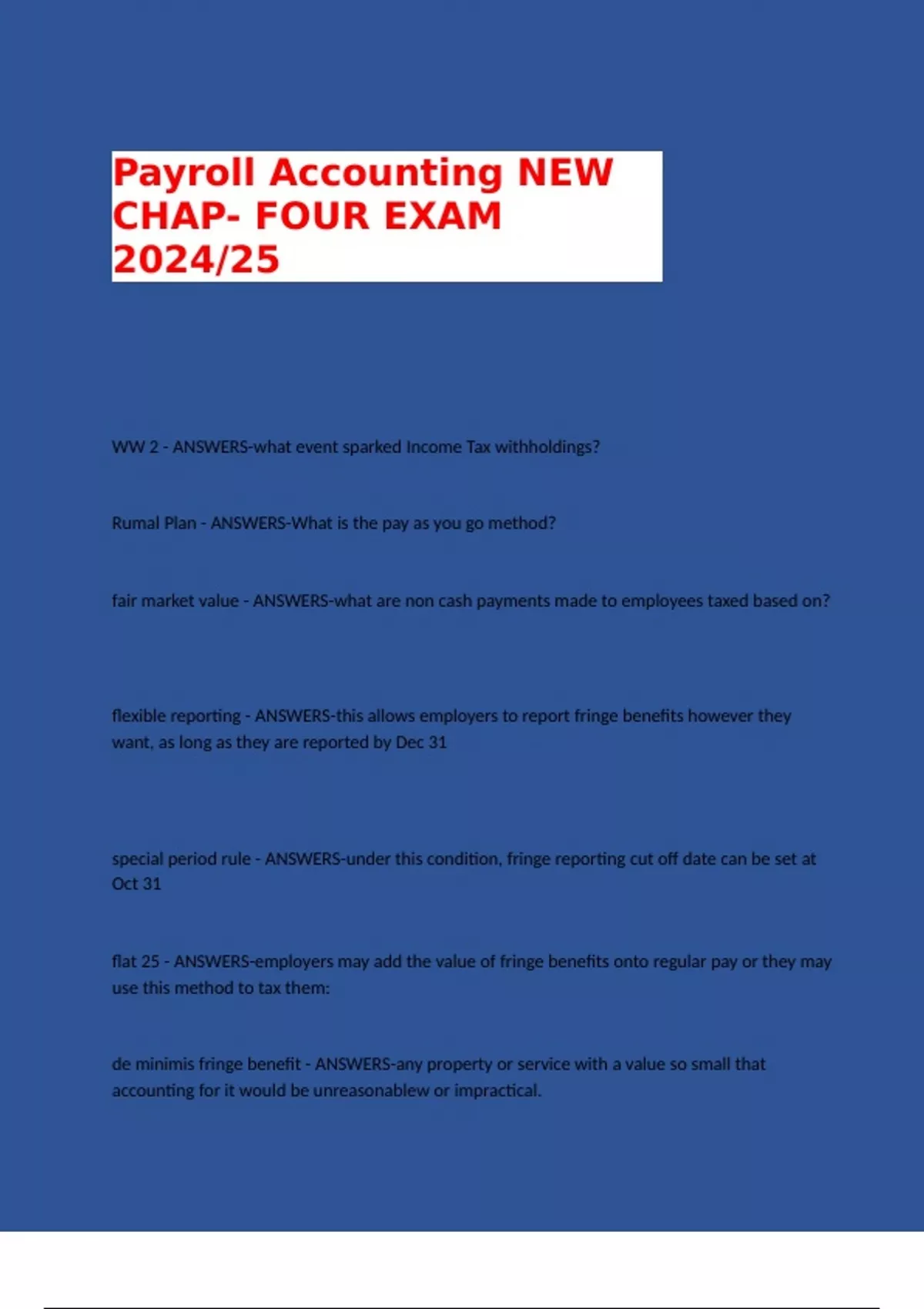 flexible reporting - ANSWERS-this allows employers to report fringe benefits however they