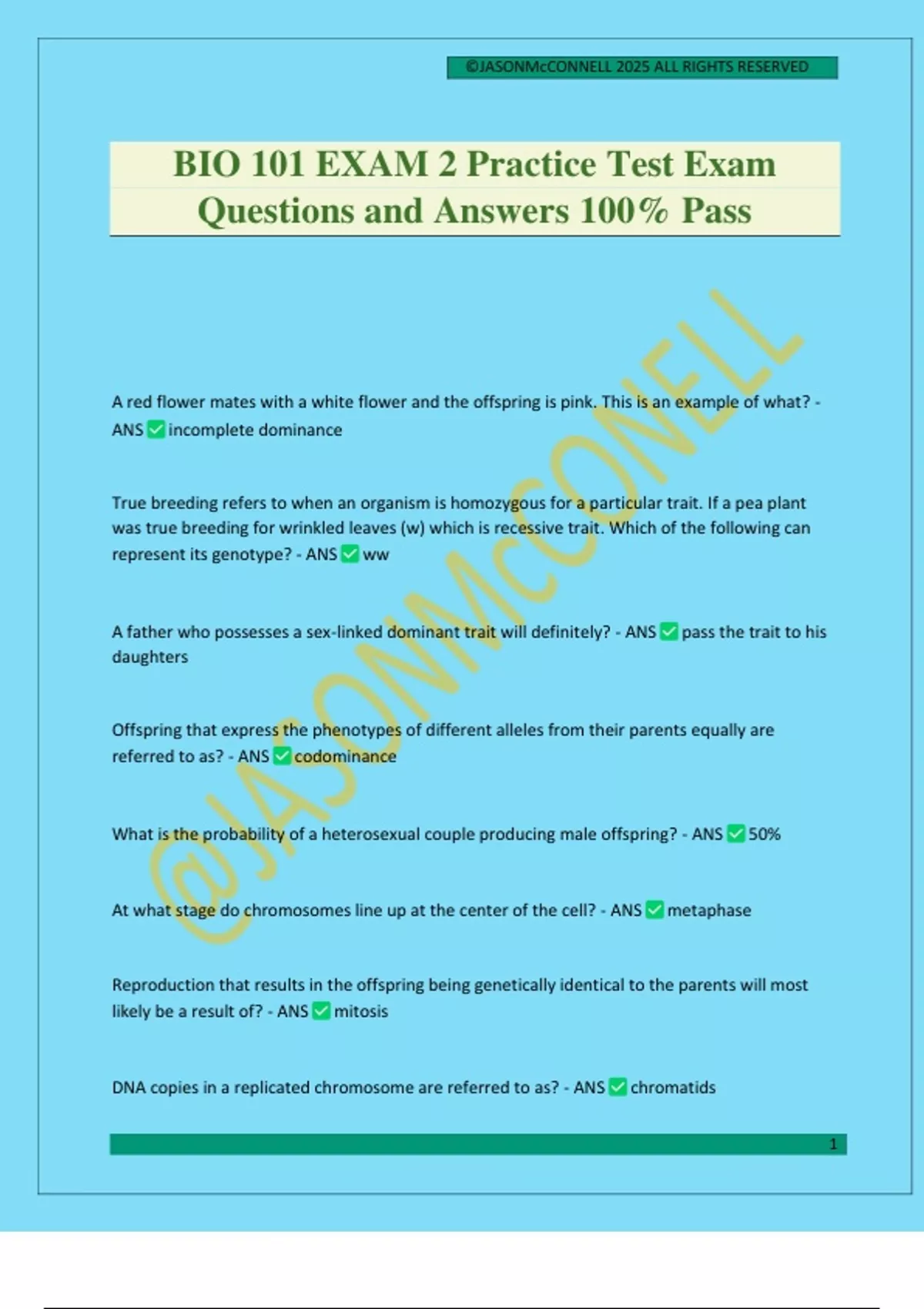 BIO 101 EXAM 2 Practice Test Exam