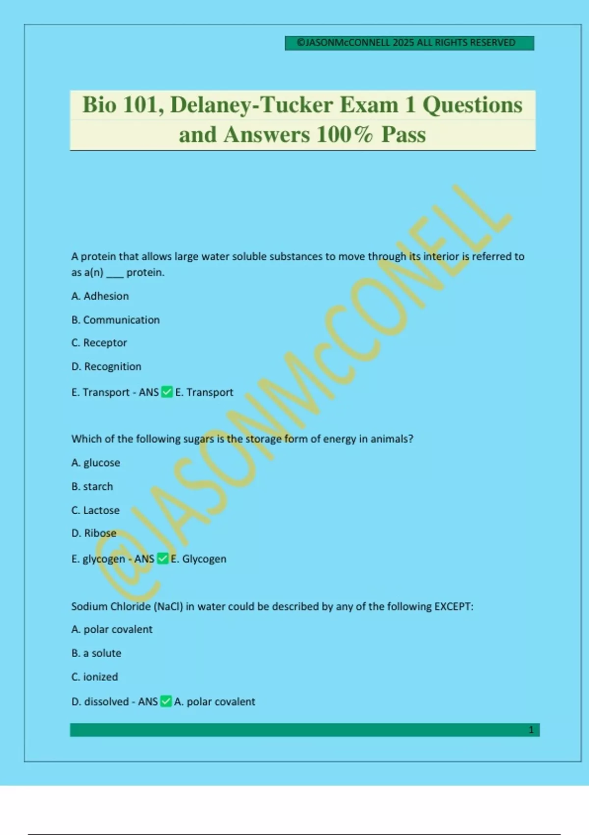 Bio 101, Delaney-Tucker Exam 1 Questions