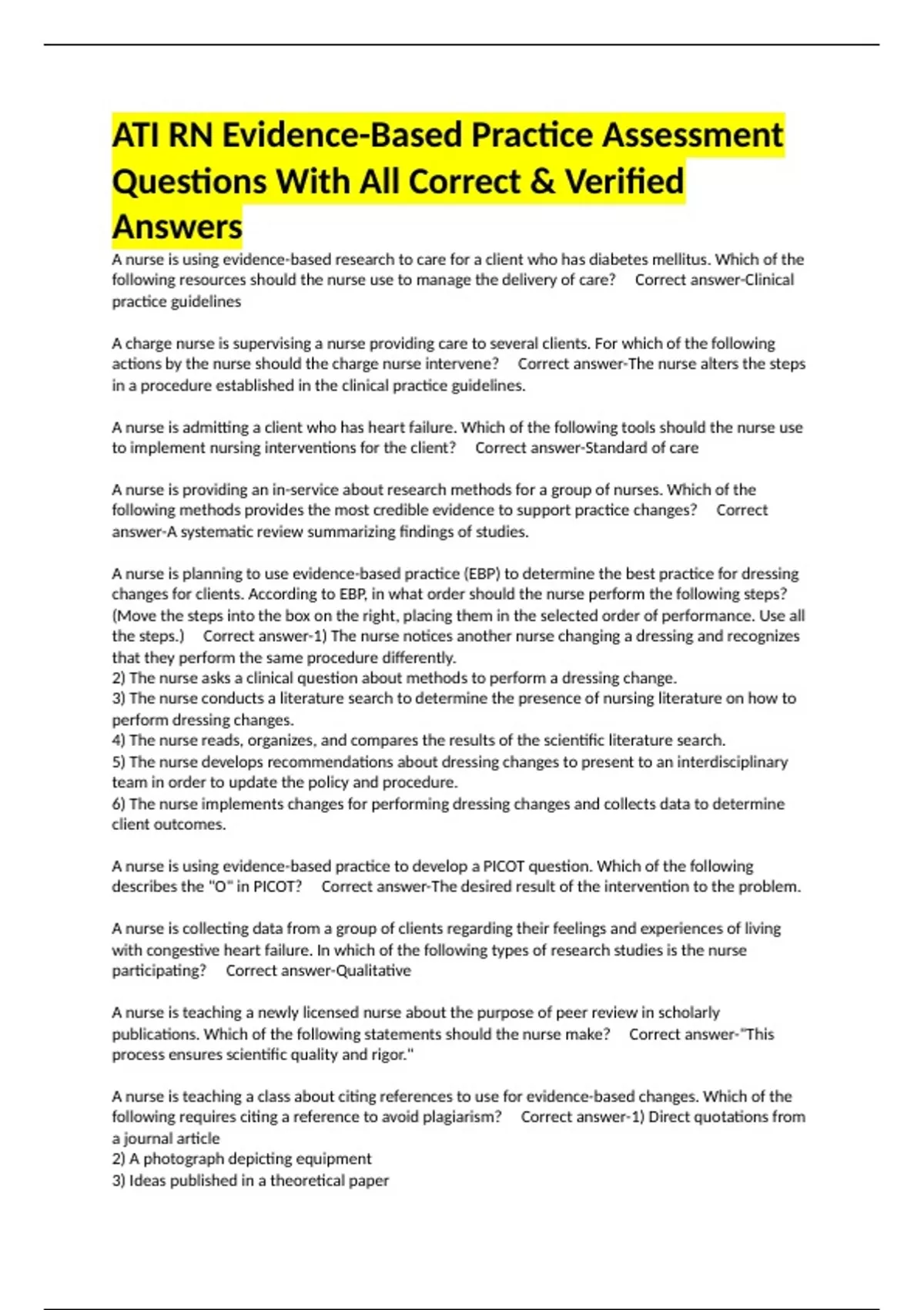changes for clients. According to EBP, in what order should the nurse perform the following steps?