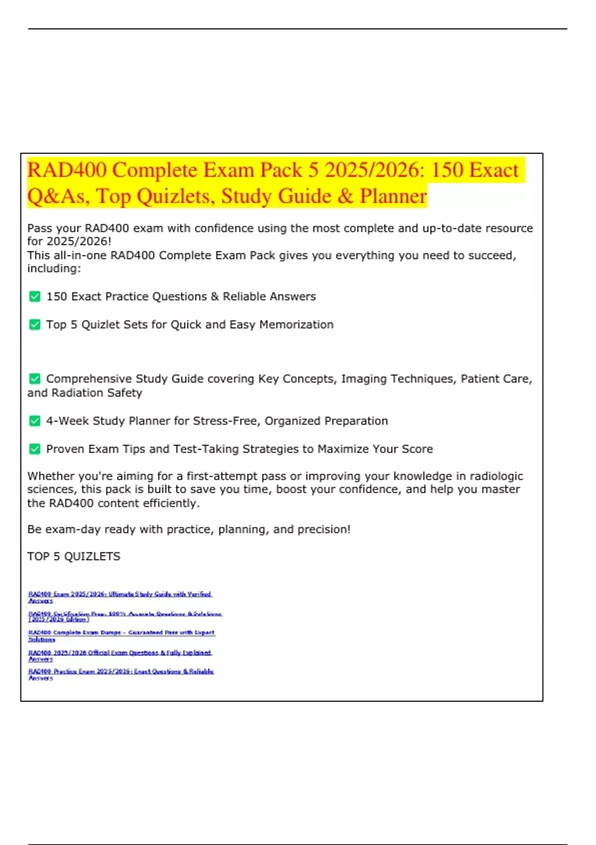 RAD400 Practice Exam 2025/2026: 4-Week Study