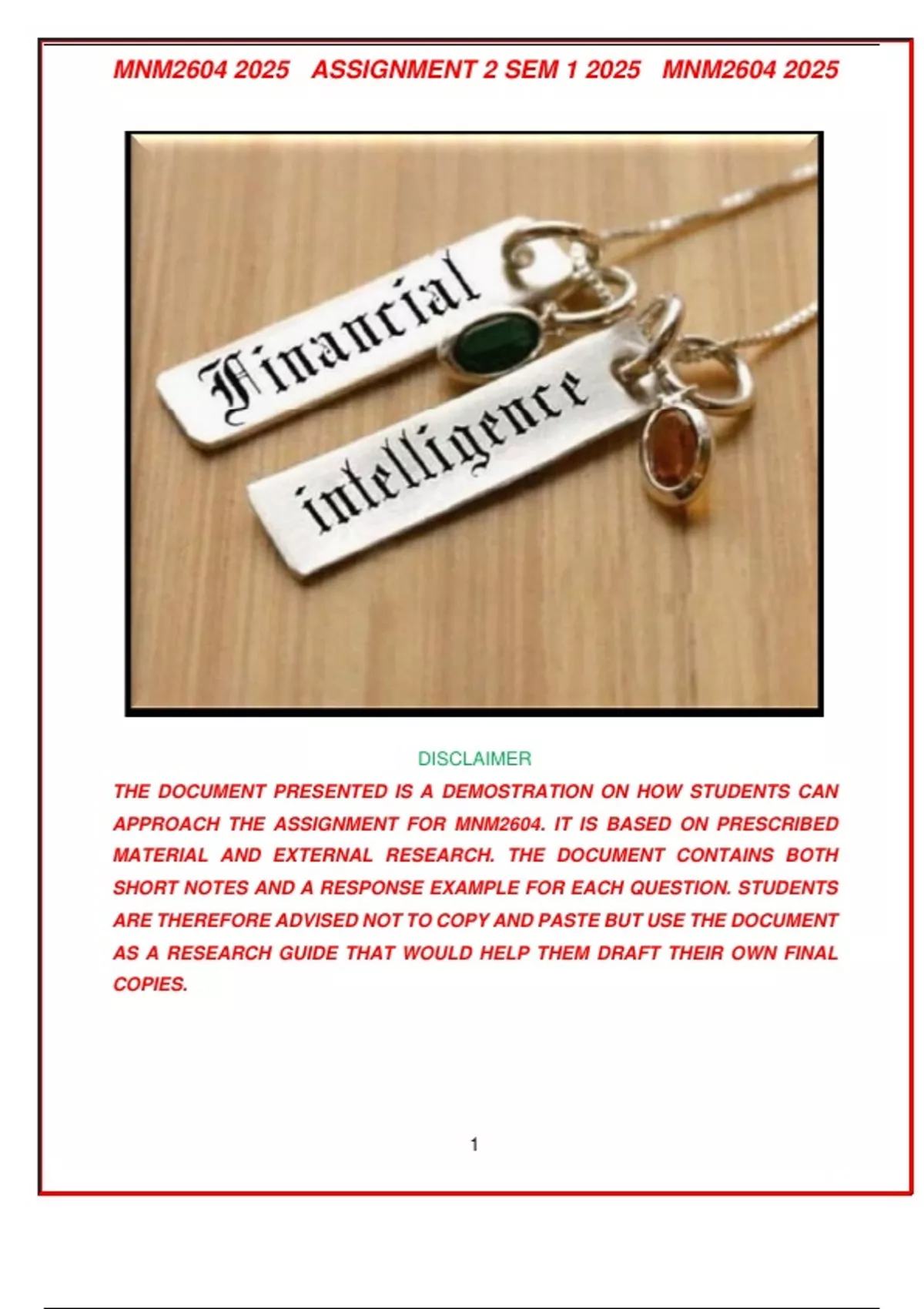 MNM2604 2025 ASSIGNMENT 2 SEM 1 2025 MNM2604 2025