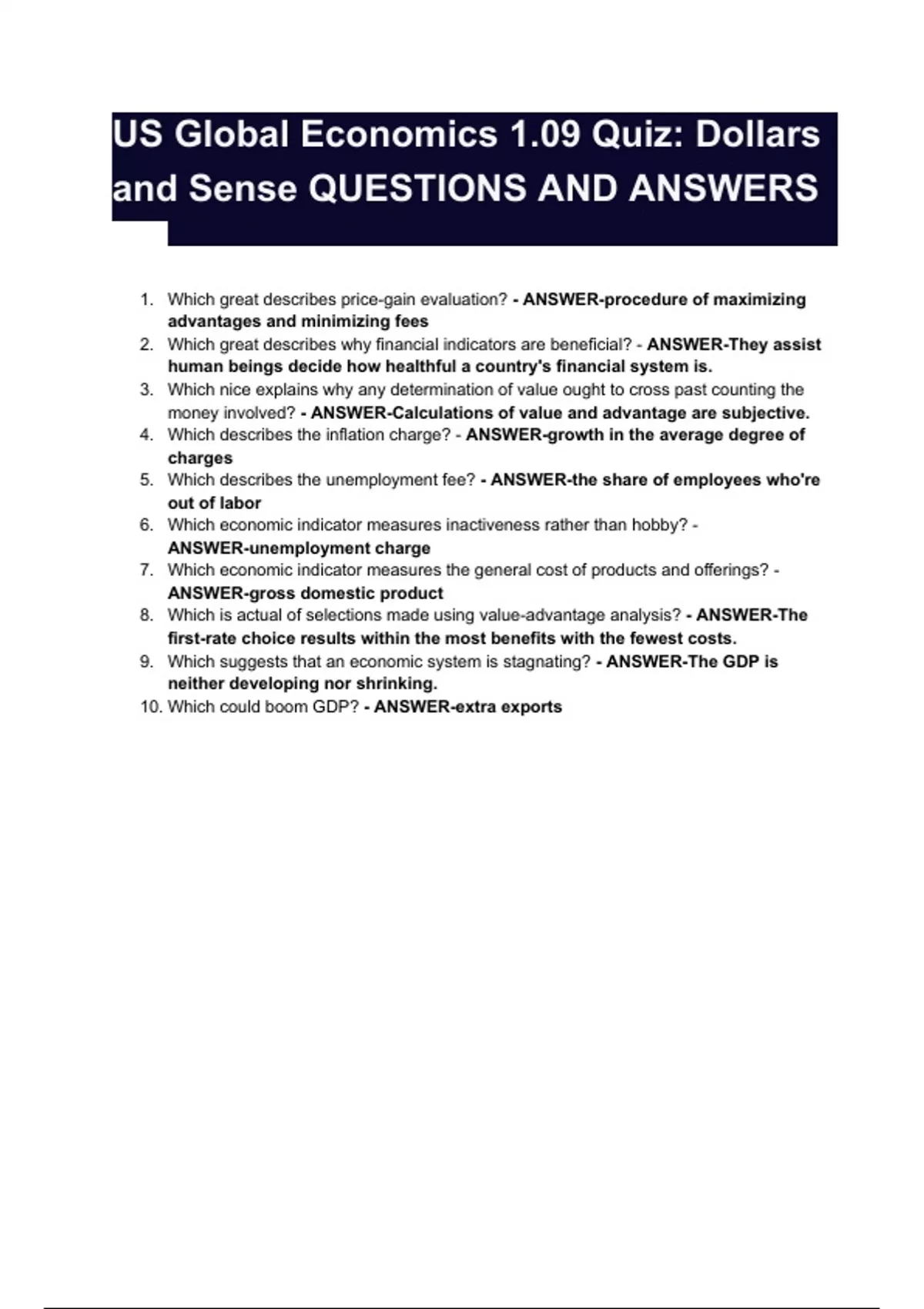 9. Which suggests that an economic system is stagnating? - ANSWER-The GDP is