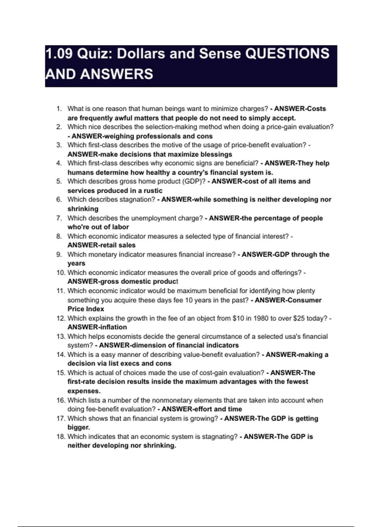 1.09 Quiz: Dollars and Sense QUESTIONS