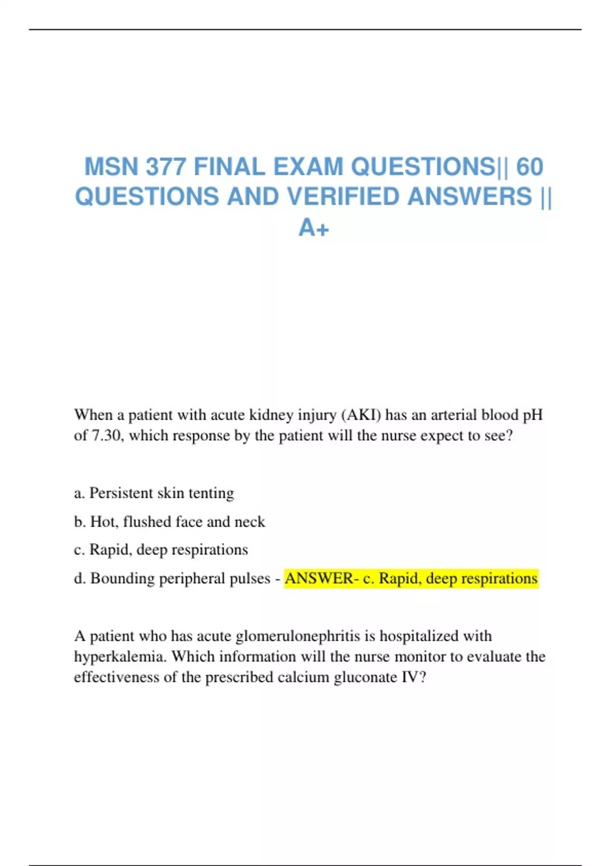 d. Serum potassium - ANSWER- a. Serum creatinine