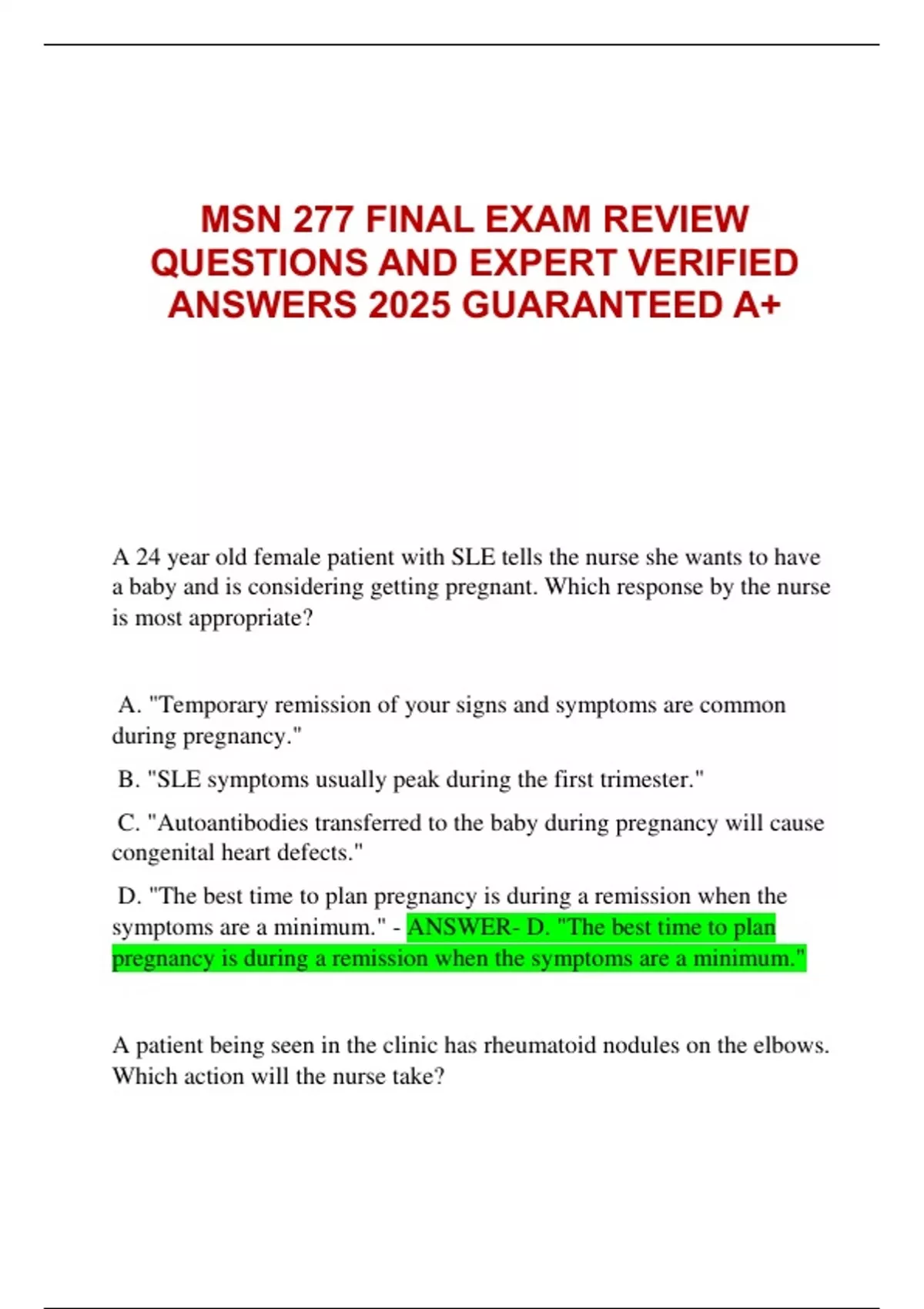 MSN 277 FINAL EXAM REVIEW QUESTIONS AND EXPERT VERIFIED ANSWERS 2025 GUARANTEED A+MSN 277 FINAL EXAM REVIEW QUESTIONS AND EXPERT VERIFIED ANSWERS 2025 GUARANTEED A+MSN 277 FINAL EXAM REVIEW QUESTIONS AND EXPERT VERIFIED ANSWERS 2025 GUARANTEED A+MSN 277 FINAL EXAM REVIEW QUESTIONS AND EXPERT VERIFIED ANSWERS 2025 GUARANTEED A+
