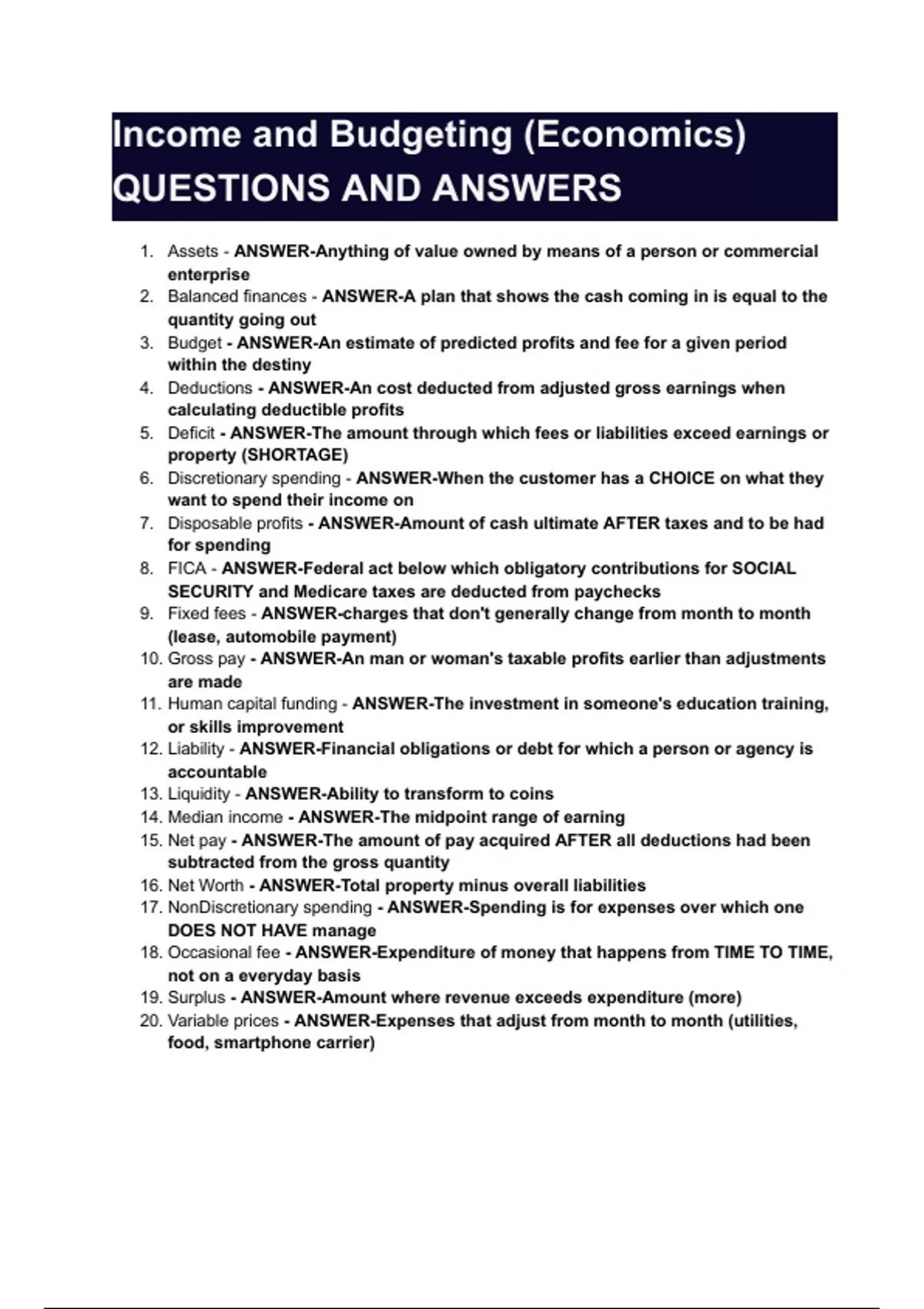 16.Net Worth - ANSWER-Total property minus overall liabilities