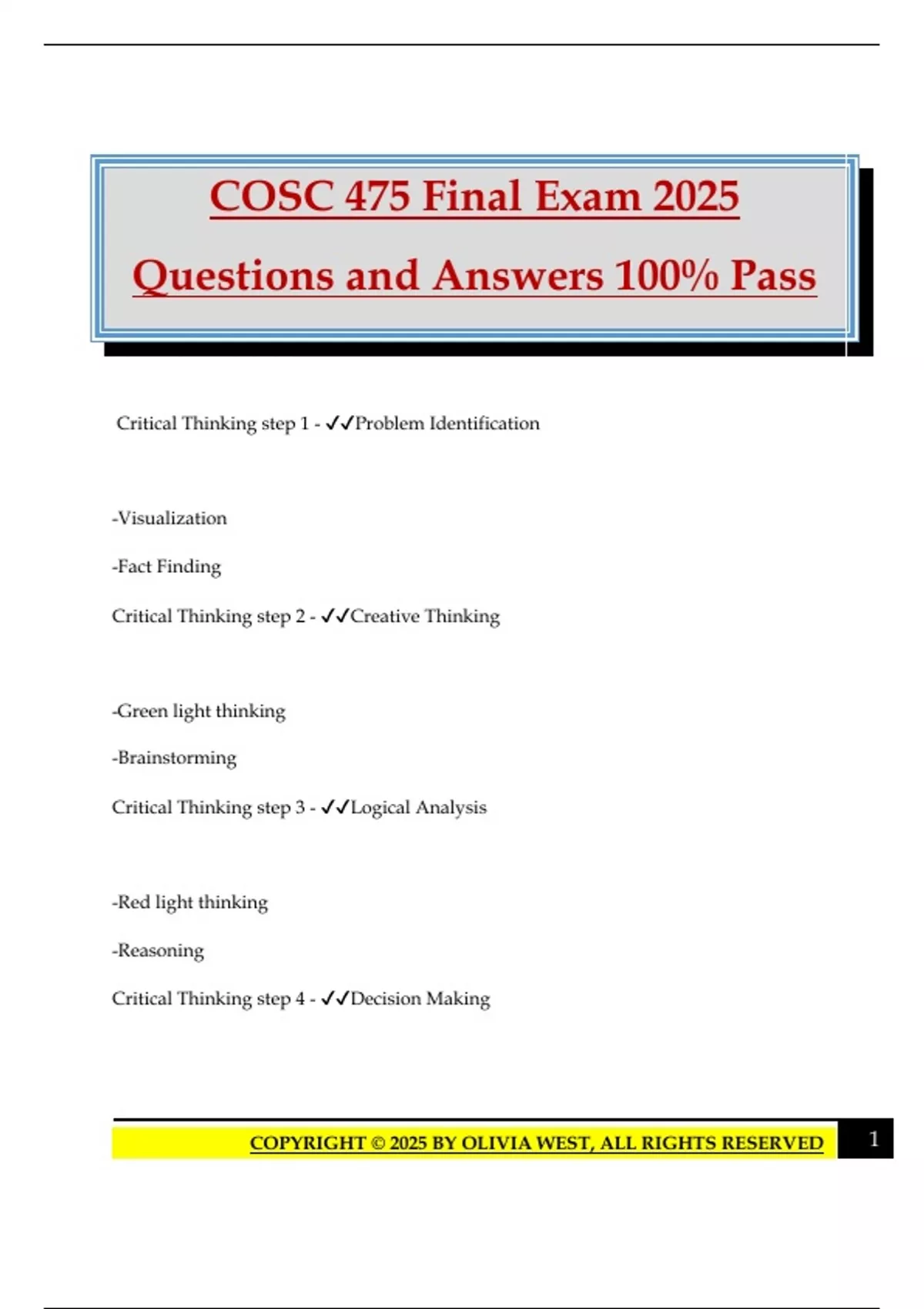 Critical Thinking step 1 - ✔✔Problem Identification