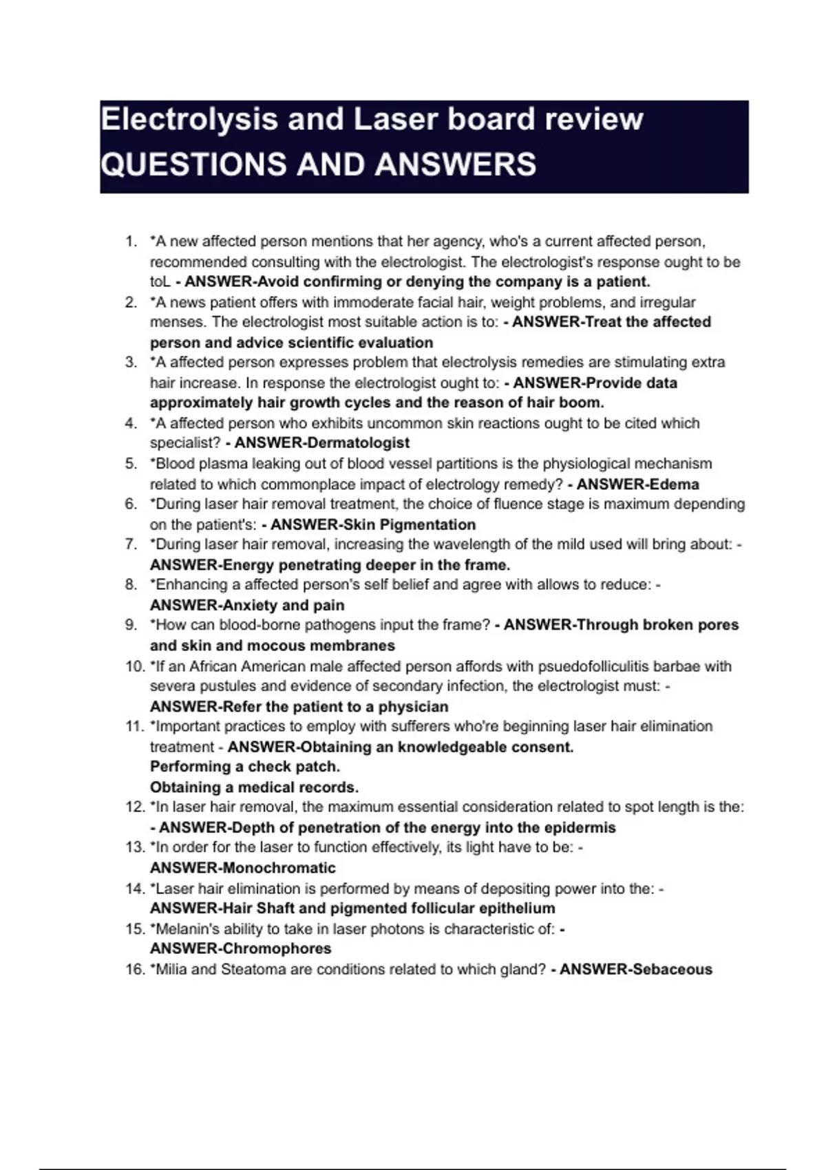 11.*Important practices to employ with sufferers who're beginning laser hair elimination