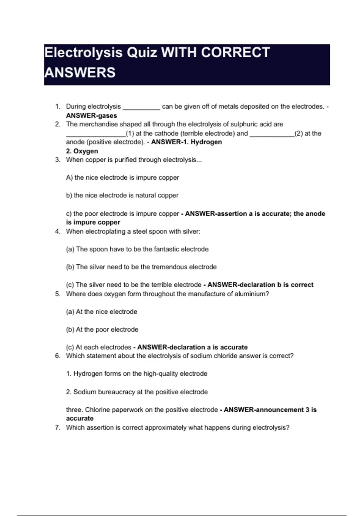 6. Which statement about the electrolysis of sodium chloride answer is correct?