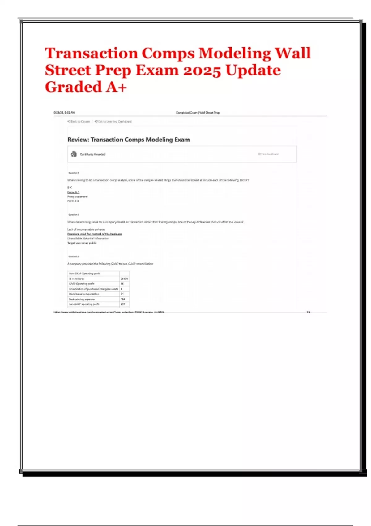 Transaction Comps Modeling Wall Street Prep Exam 2025 Update Graded A+
