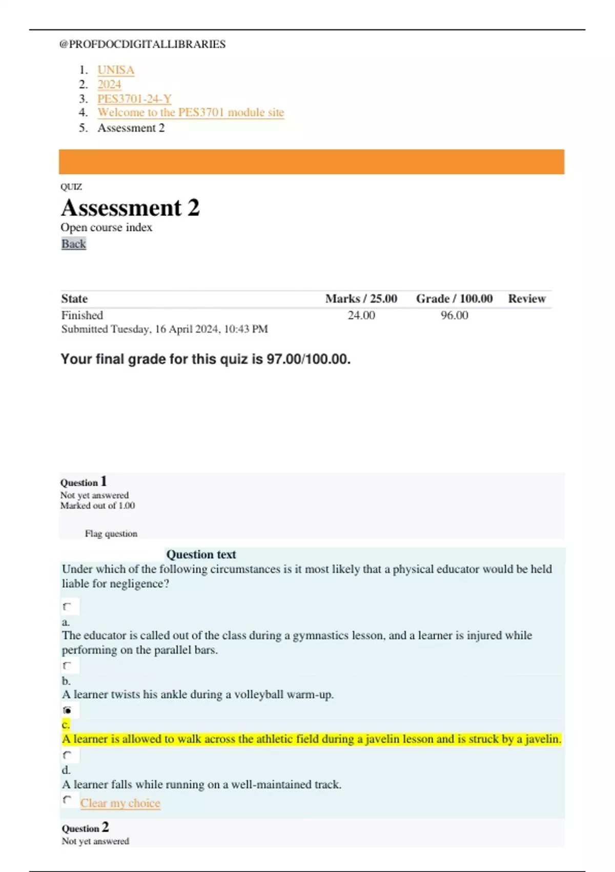 Your final grade for this quiz is 97.00/100.00.