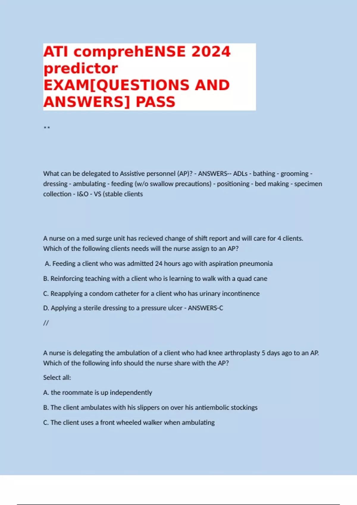 ATI RN COMPREHENSE 2024/25 PREDICTOR ['QUESTIONS AND ANSWERS] exam 2
