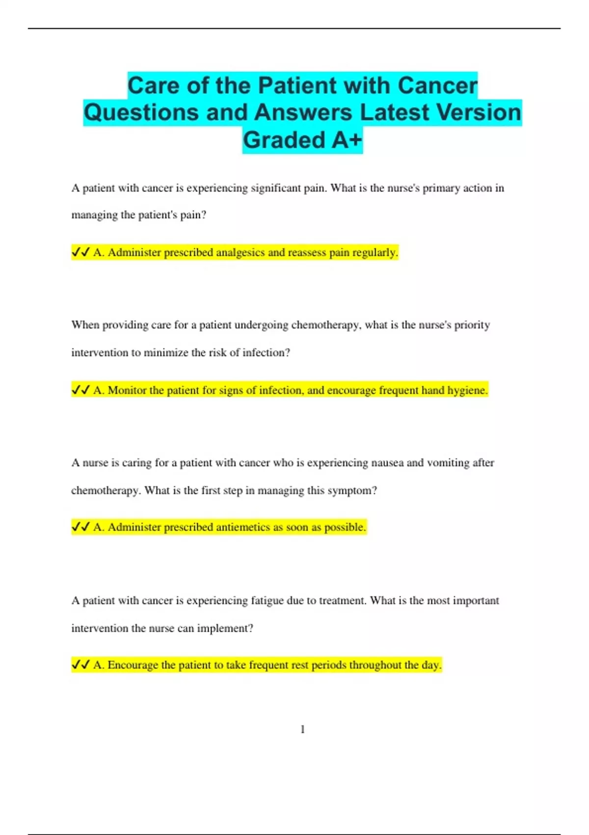 ✔✔ A. Administer prescribed analgesics and reassess pain regularly.
