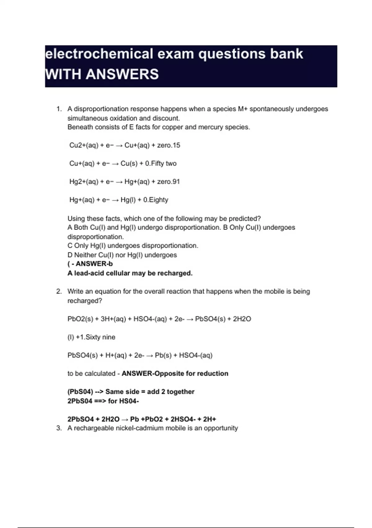 1. A disproportionation response happens when a species M+ spontaneously undergoes
