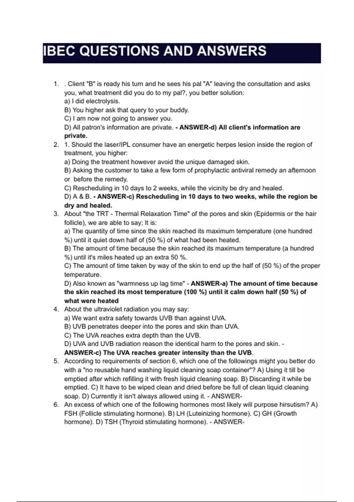 IBEC QUESTIONS AND ANSWERS