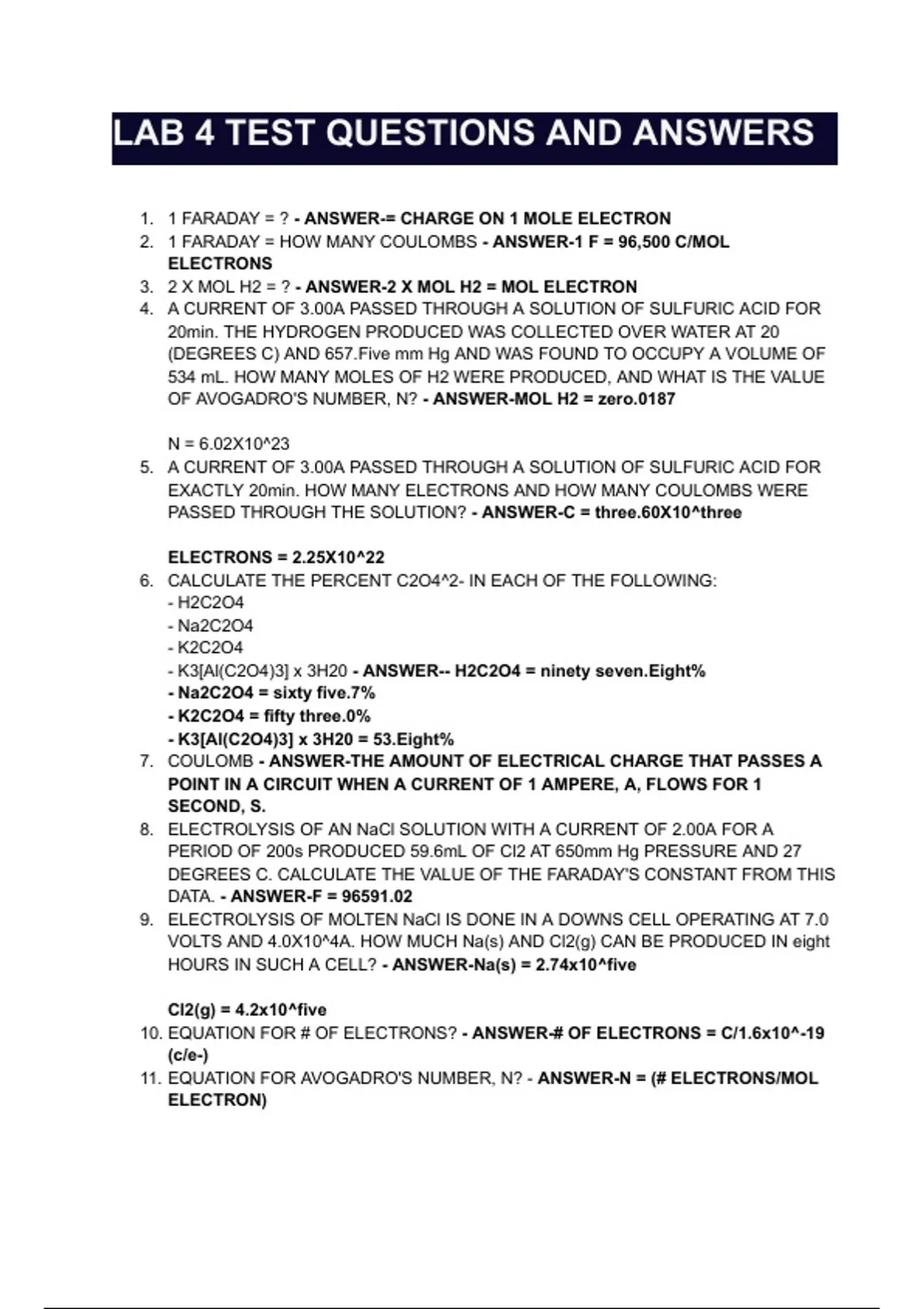 LAB 4 TEST QUESTIONS AND ANSWERS