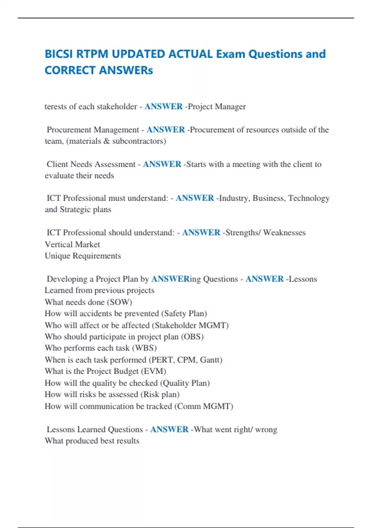 CORRECT ANSWERs