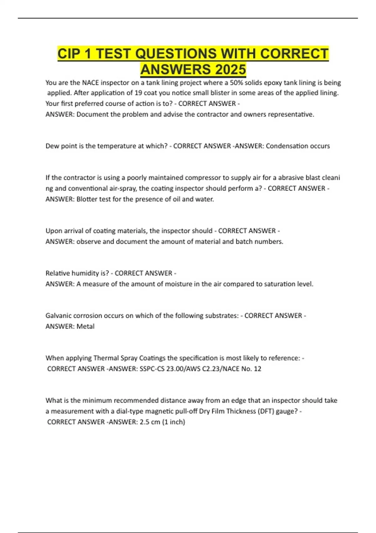 CIP 1 TEST QUESTIONS WITH CORRECT