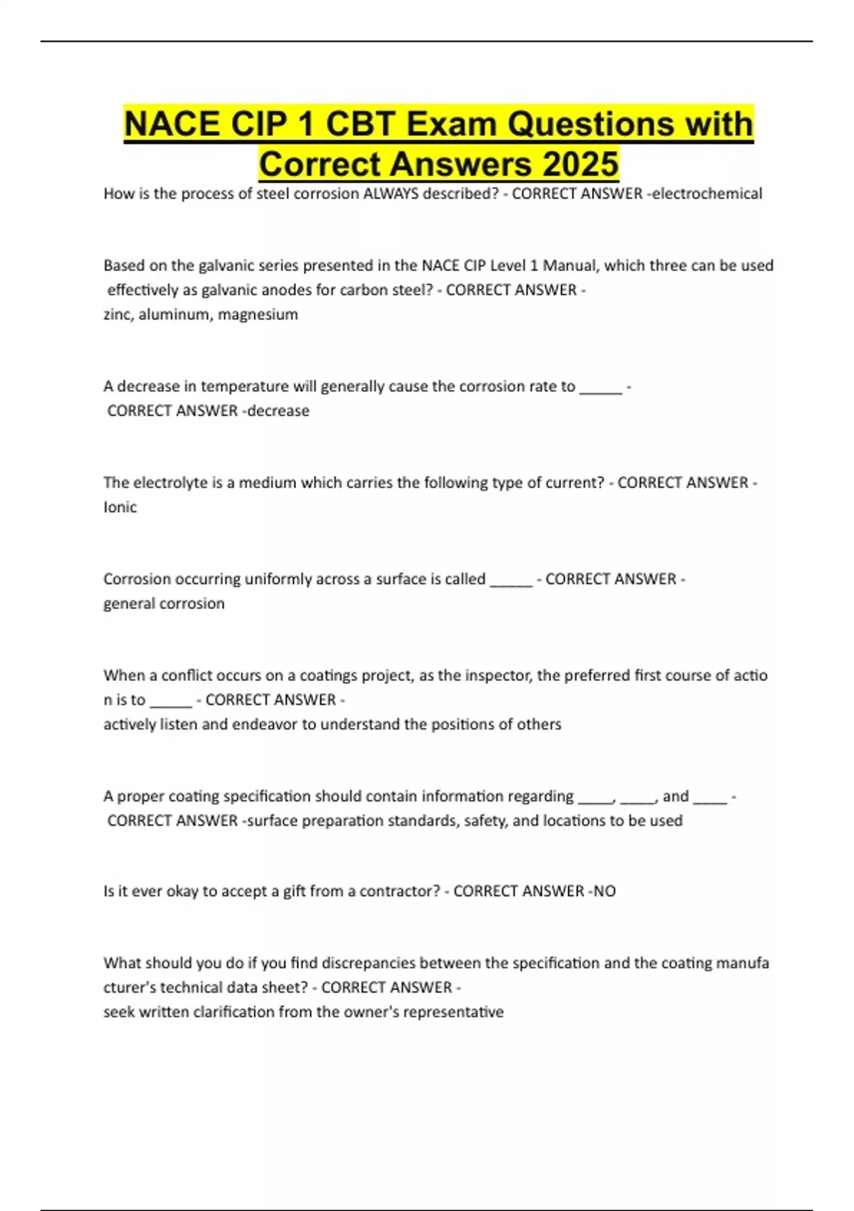 NACE CIP 1 CBT Exam Questions with Correct Answers 2025