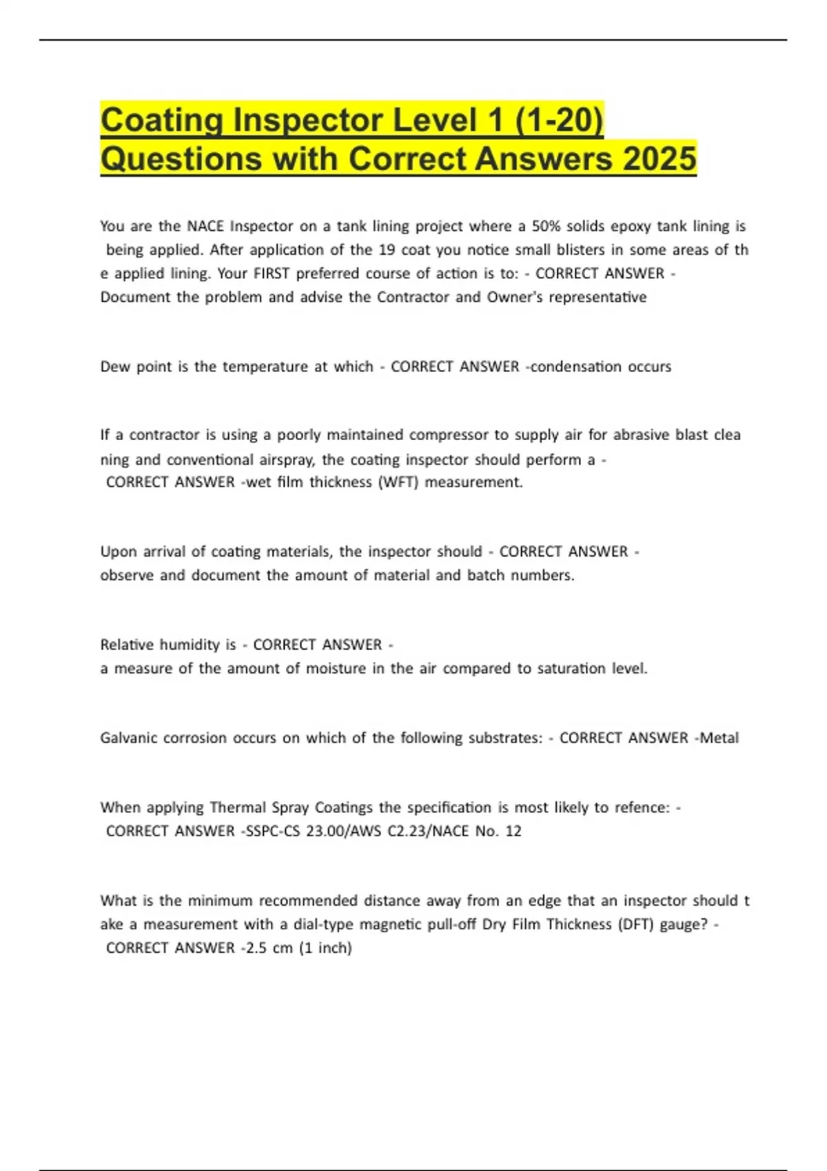 UponMarrivalMofMcoatingMmaterials,MtheMinspectorMshouldM-MCORRECTMANSWERM-