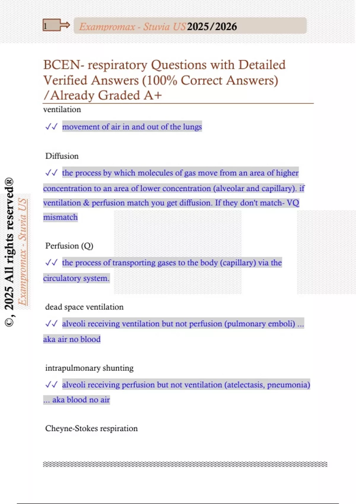✓✓ alveoli receiving ventilation but not perfusion (pulmonary emboli) ...
