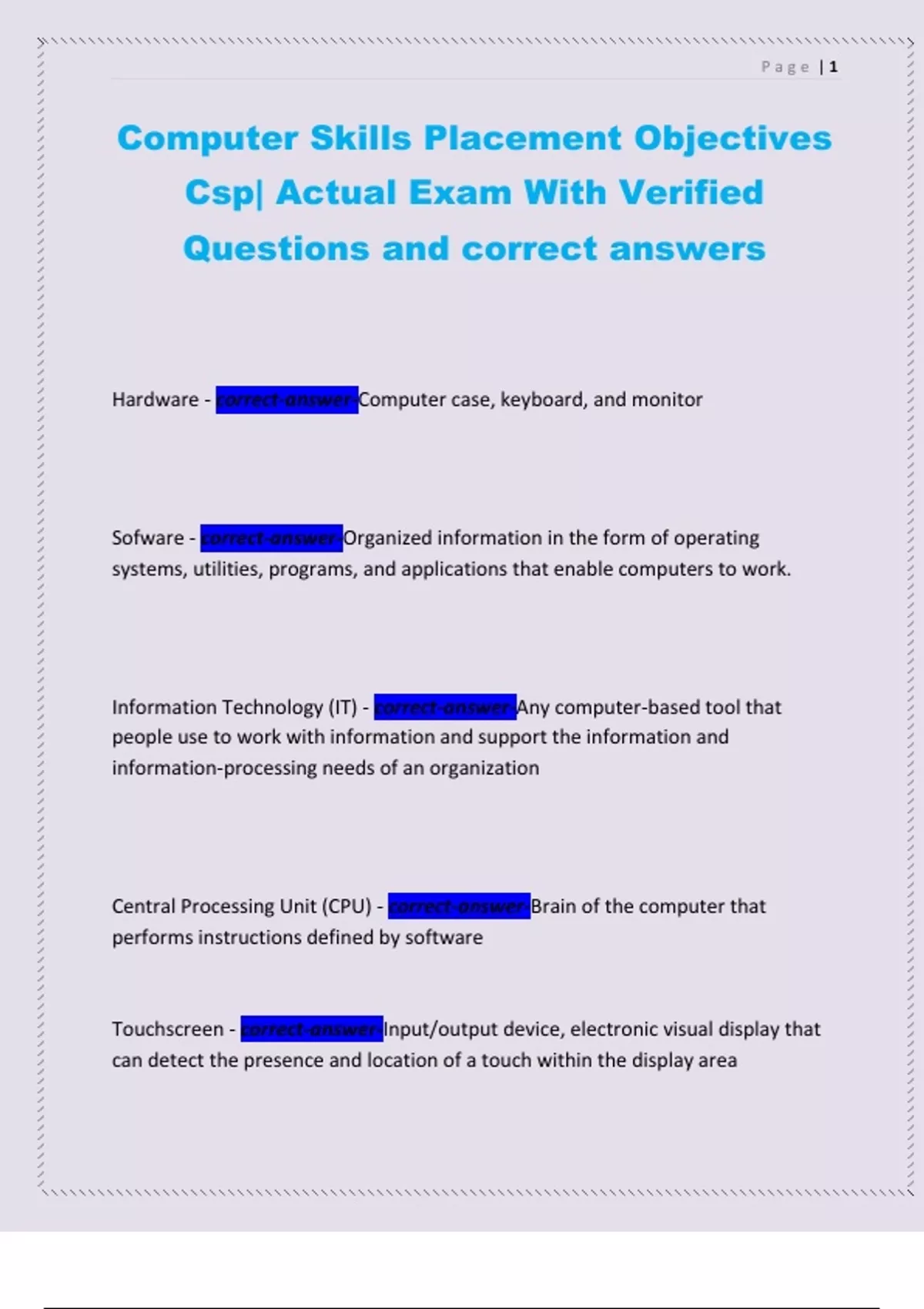 Csp| Actual Exam With Verified