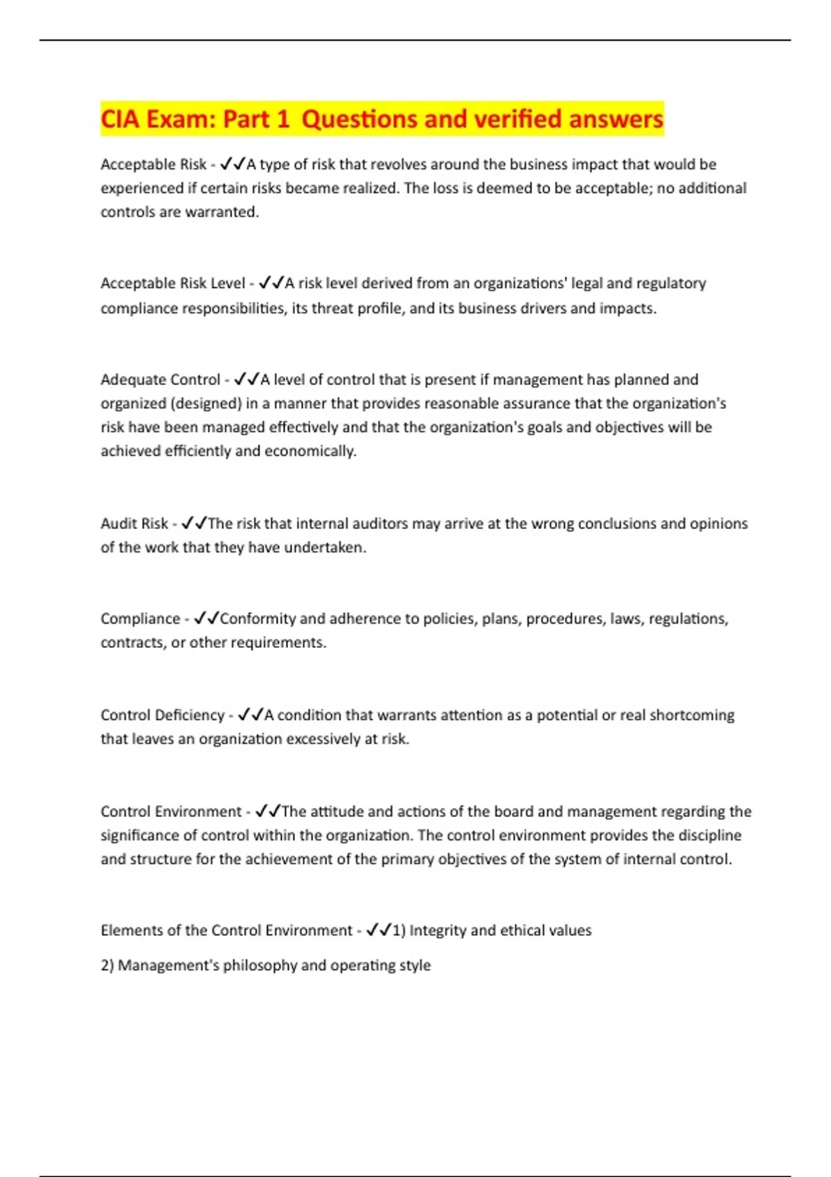 Control Deficiency - ✔✔A condition that warrants attention as a potential or real shortcoming