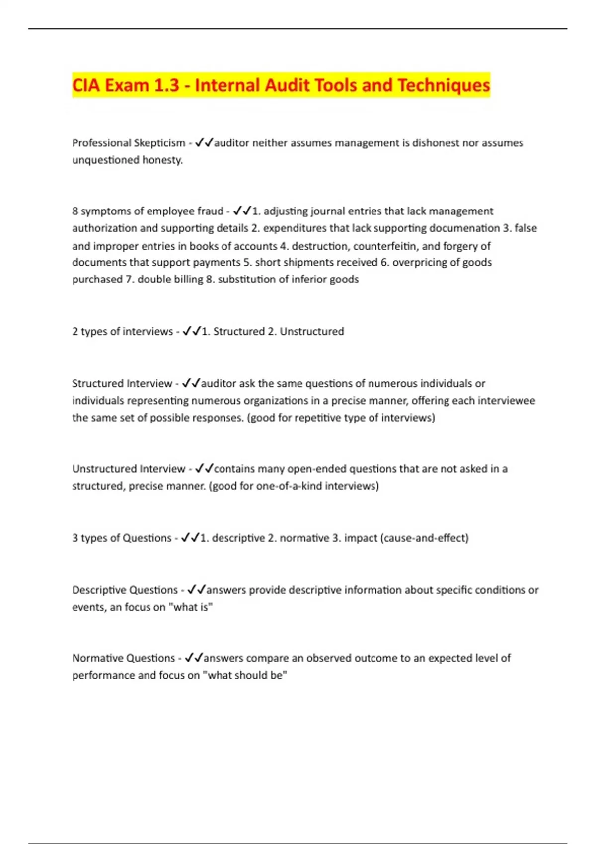 CIA Exam 1.3 - Internal Audit Tools and Techniques