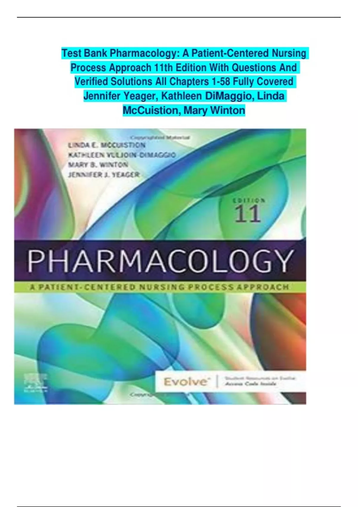 COMPLETE TEST BANK For Pharmacology A Patient-Centered Nursing Process Approach, 11th Edition by Linda E. McCuistion | ALL Chapter's 1 - 58