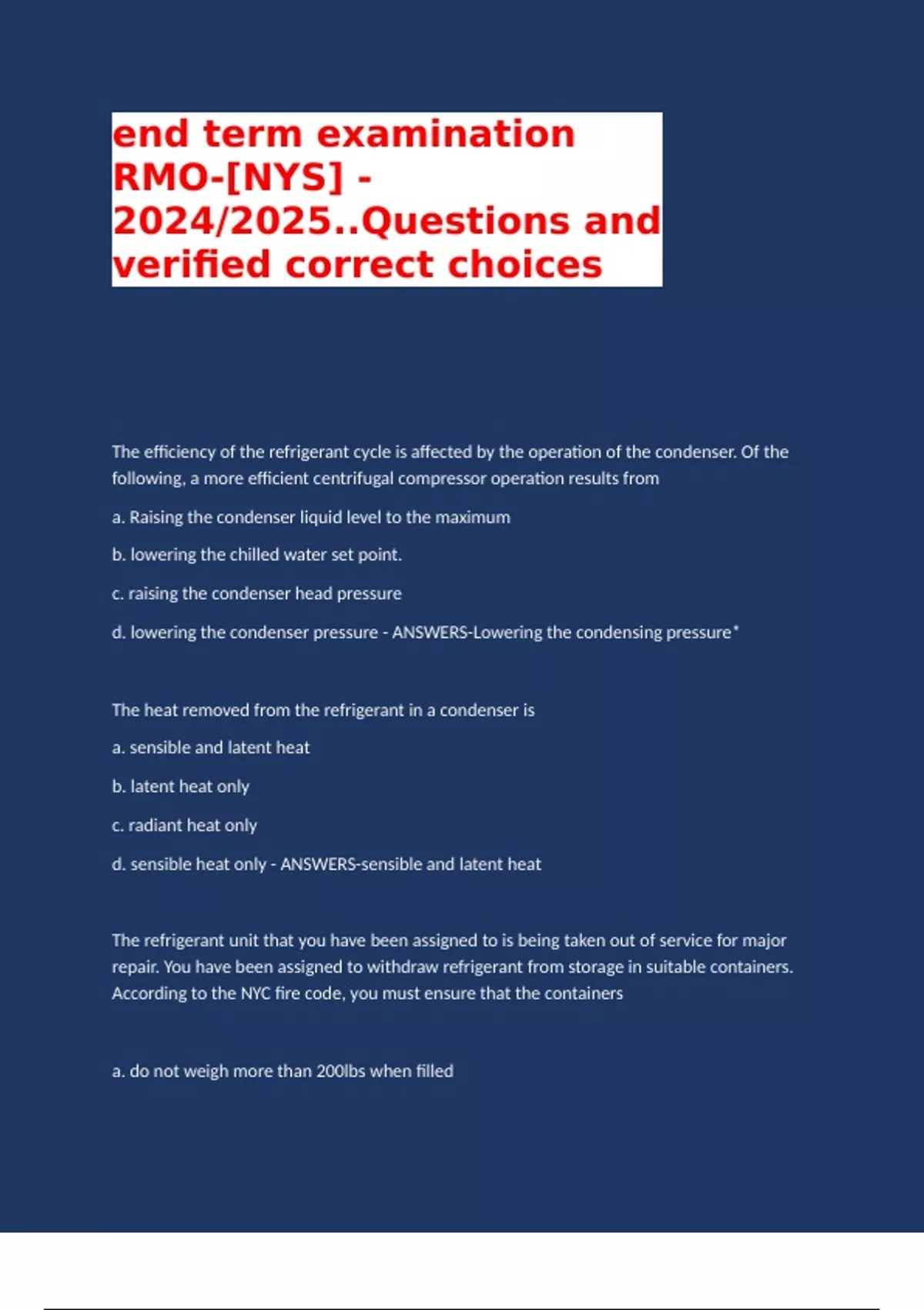 d. lowering the condenser pressure - ANSWERS-Lowering the condensing pressure*