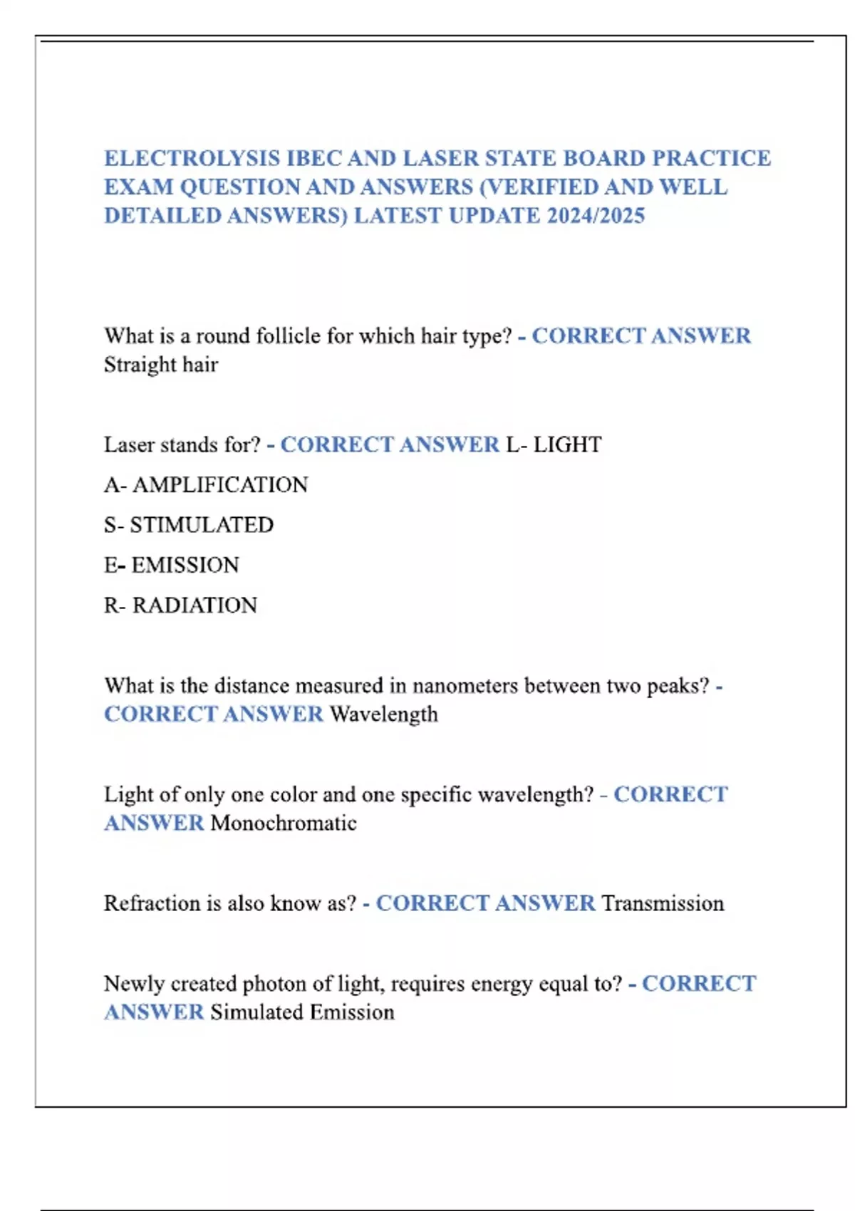 Electrolysis IBEC+Laser STATE BOARD Practice test 20 24 Questions With 100% Correct Answers!!