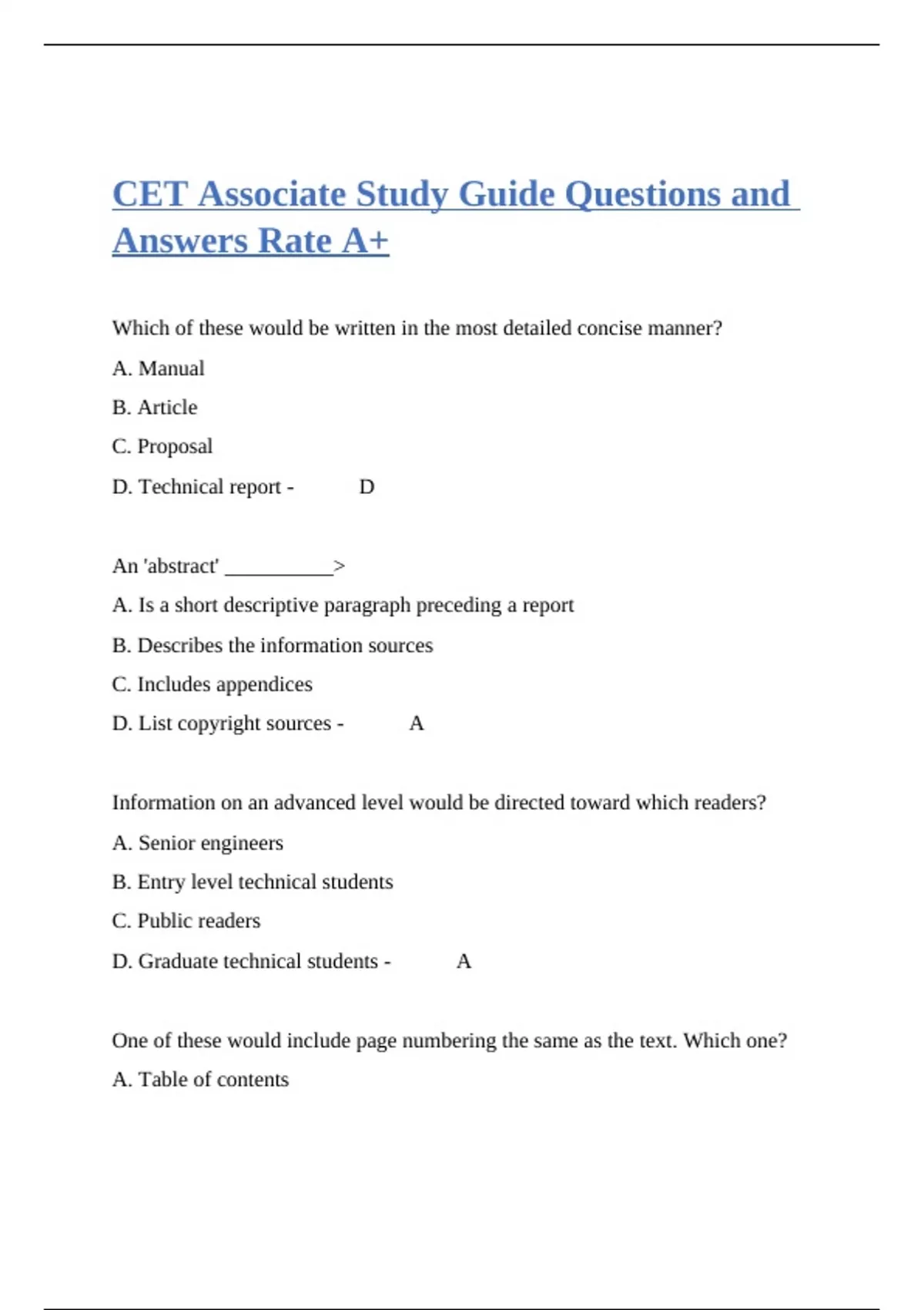 D. Graduate technical students - ✅✅ A