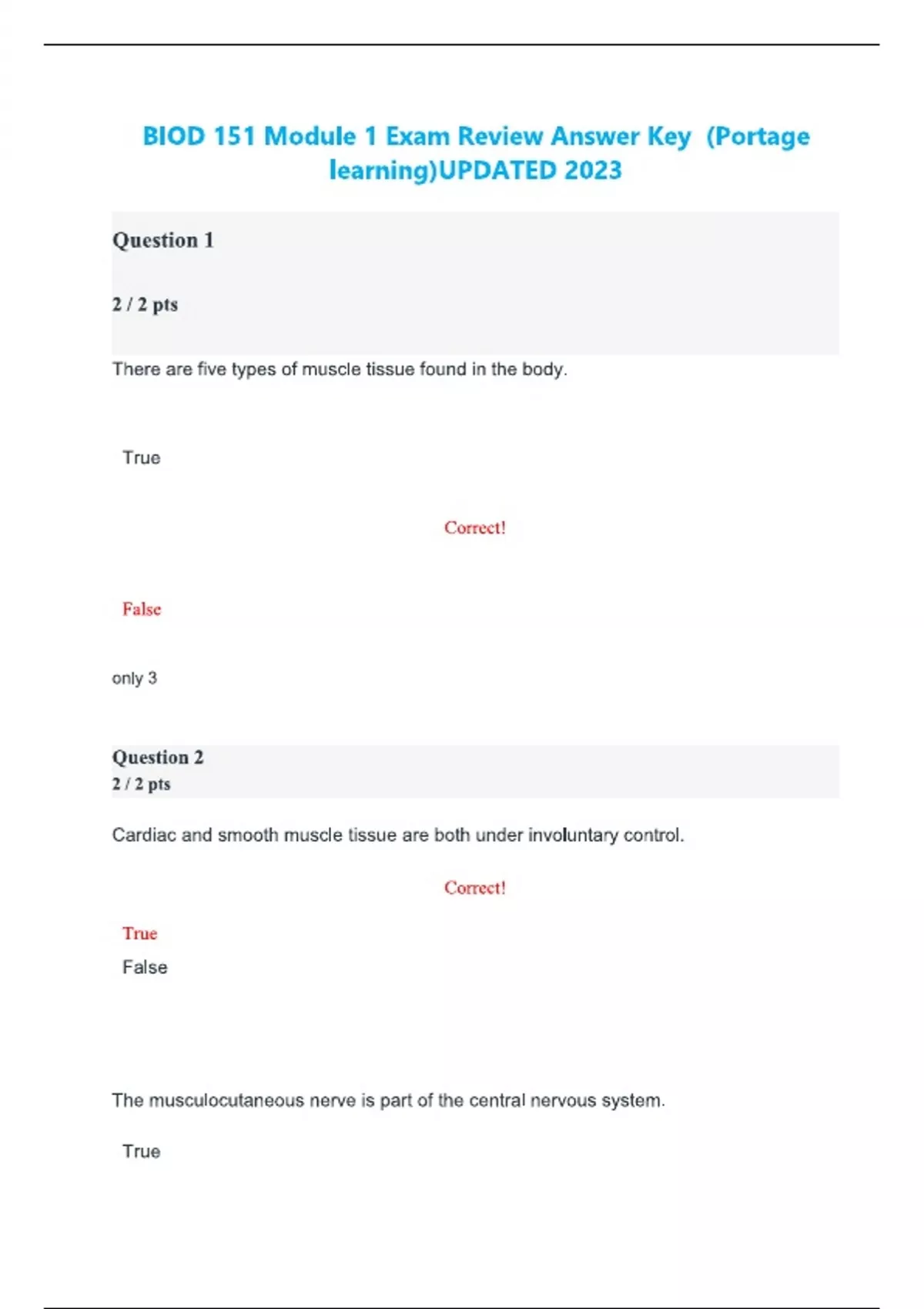 BIOD 151 Module 1 Exam Review Answer Key (Portage learning)UPDATED 2023