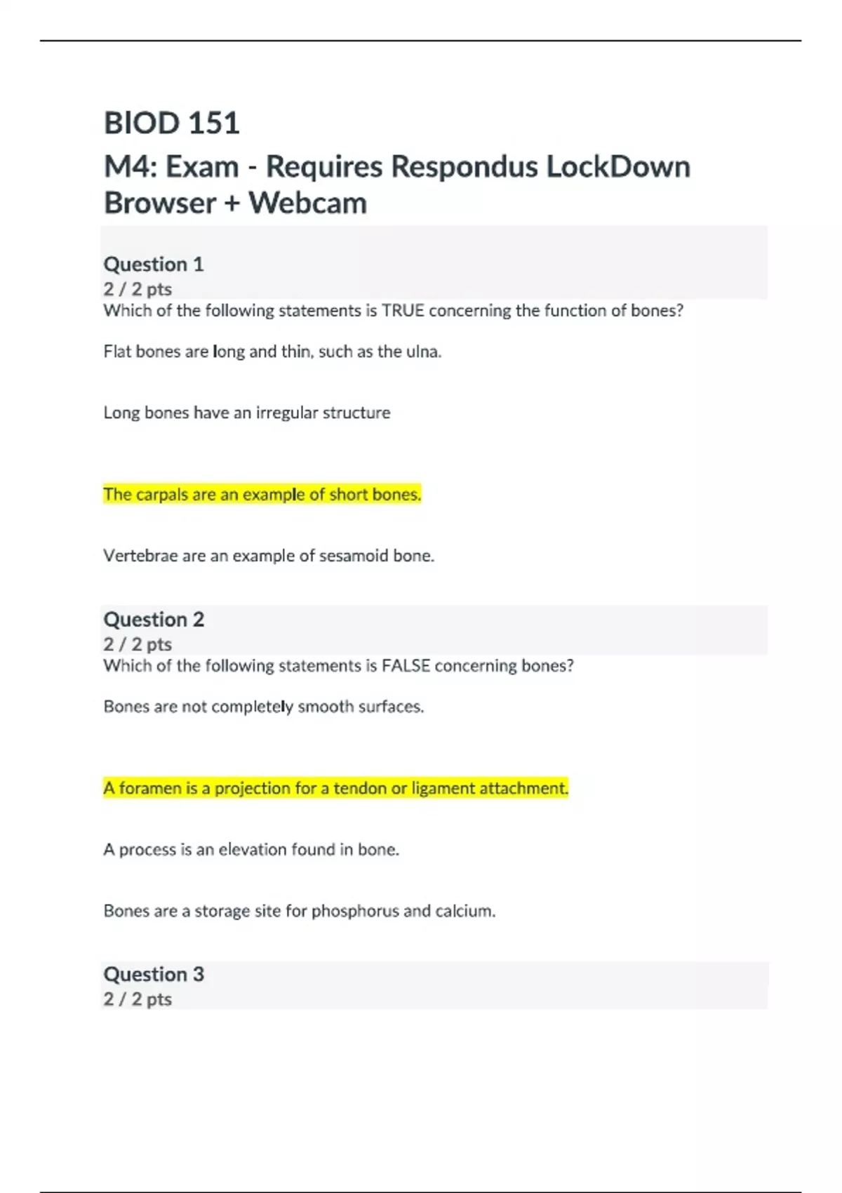 BIOD 151 M4 Exam - Requires Respondus LockDown Browser + Webcam