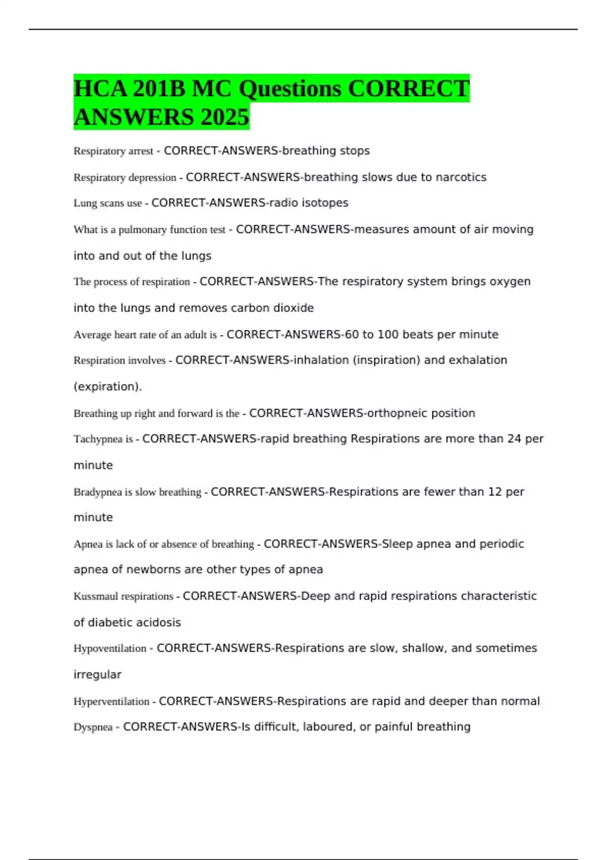 HCA 201B MC Questions CORRECT