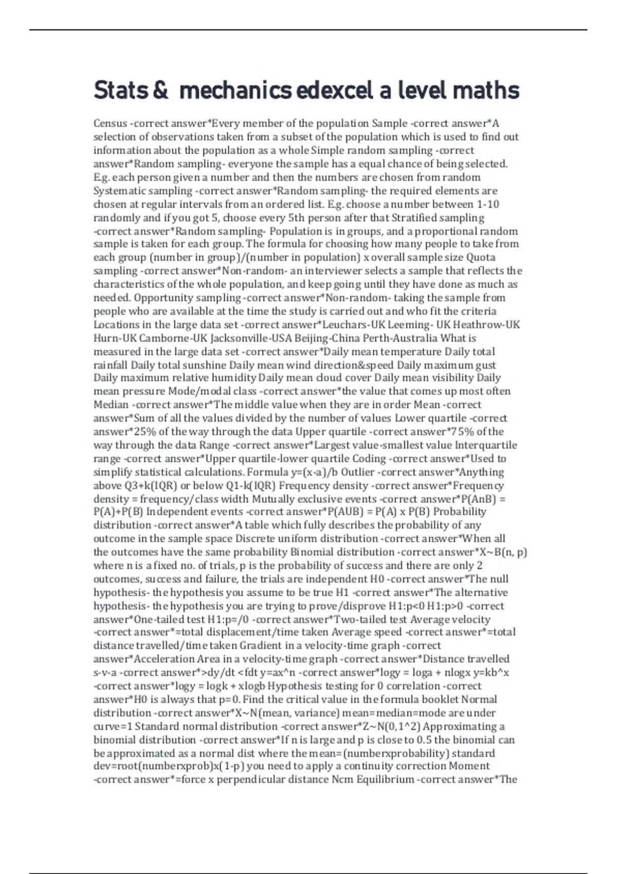 density = frequency/class width Mutually exclusive events -correct answer*P(AnB) =