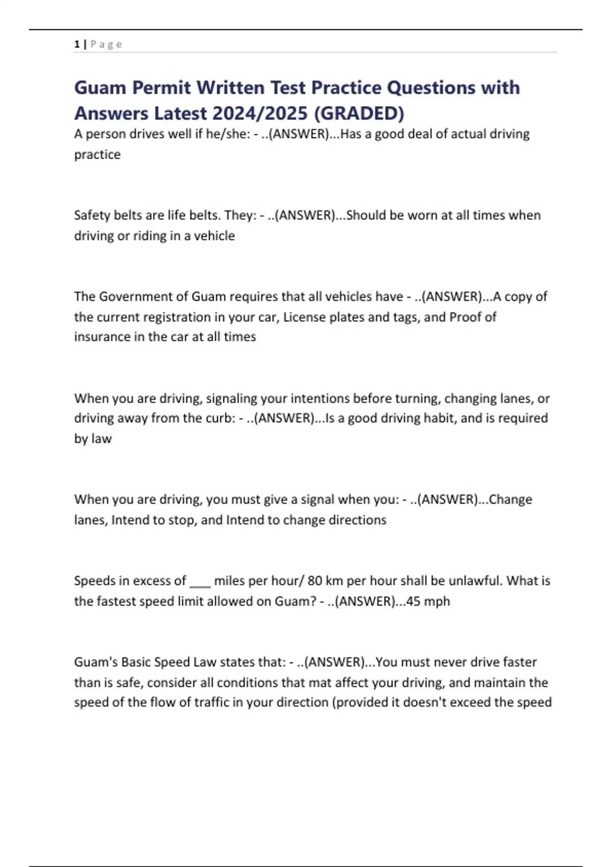 Guam Permit Written Test Practice Questions with