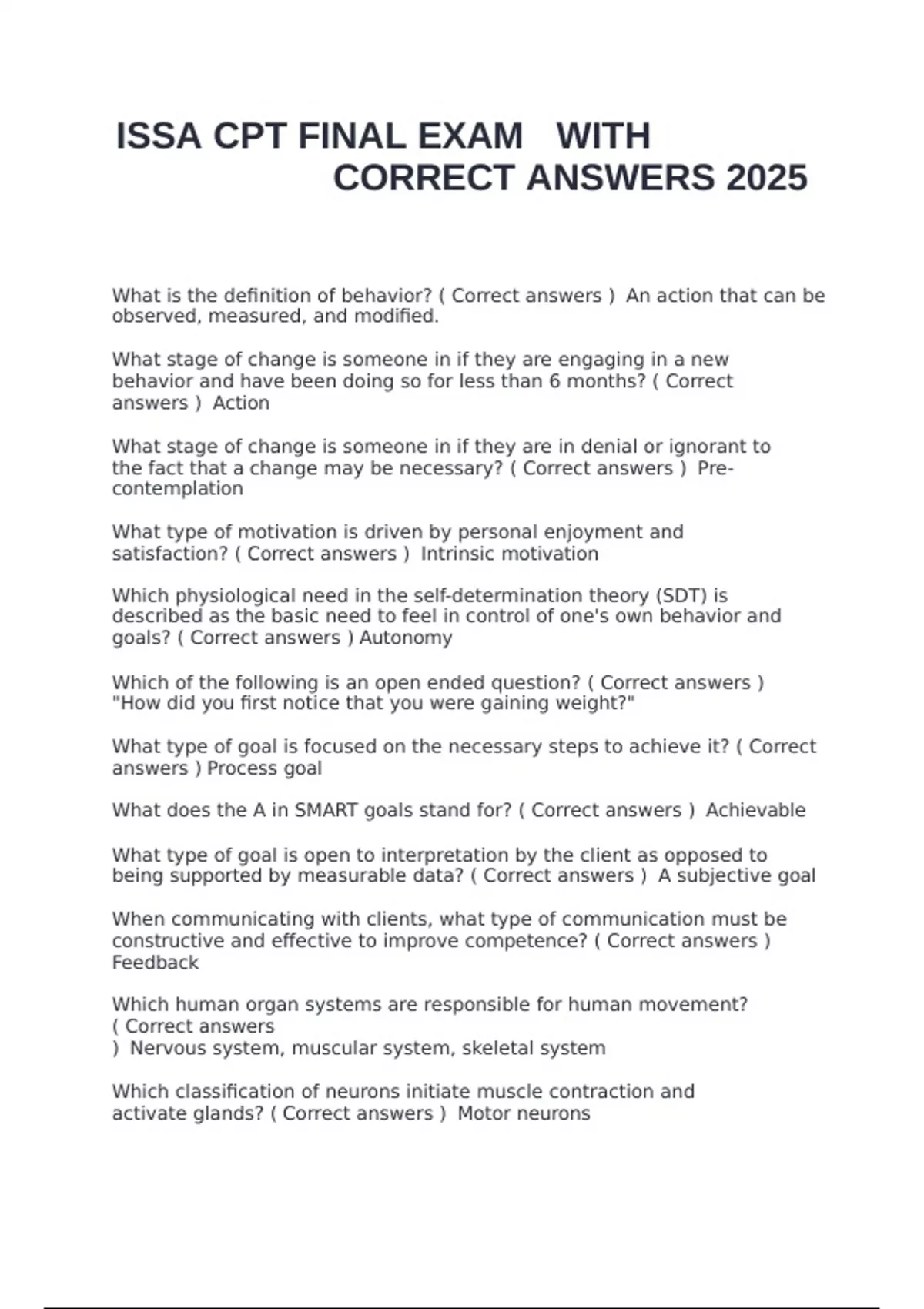 ISSA CPT FINAL EXAM WITH CORRECT ANSWERS 2025