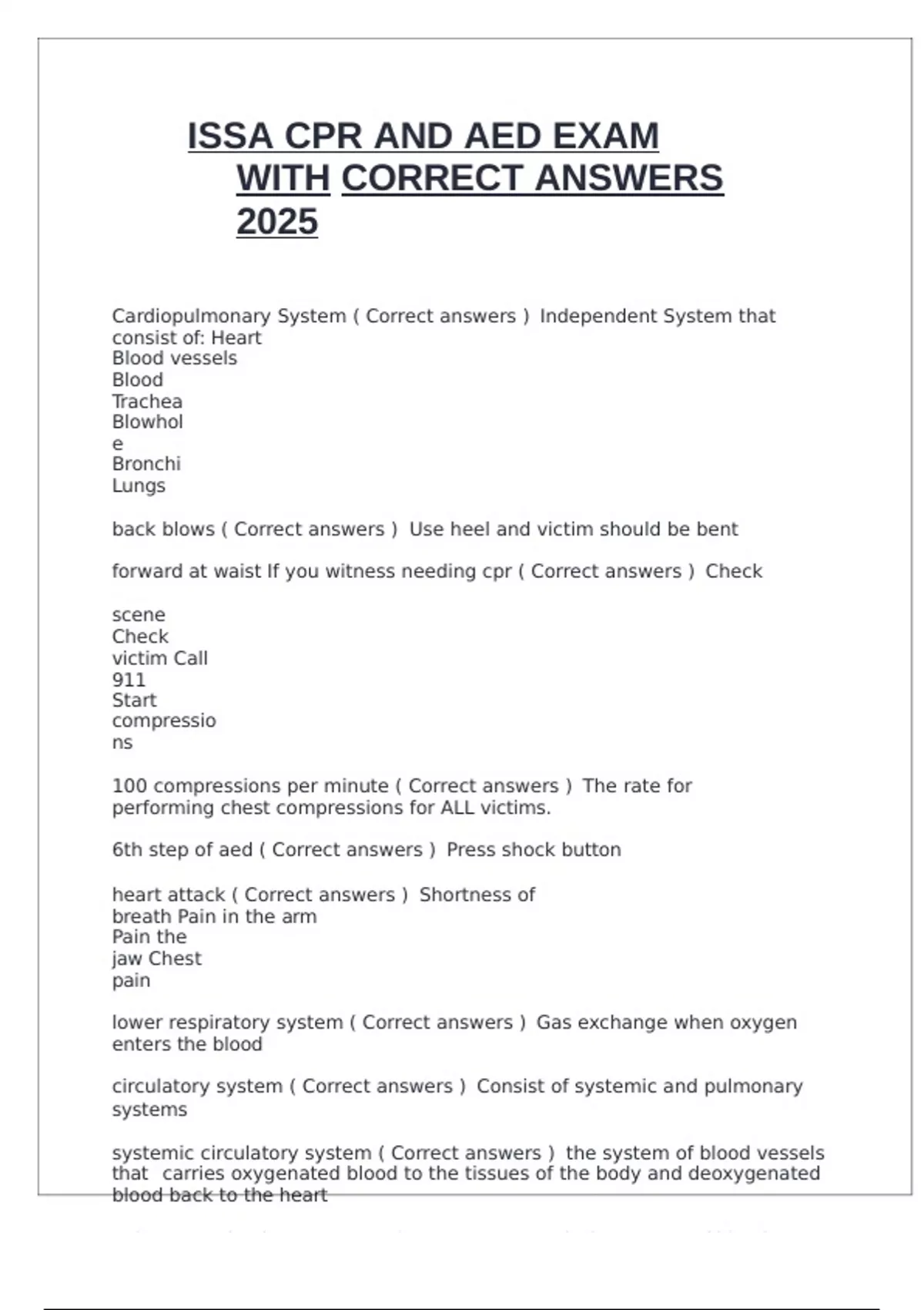 ISSA CPR AND AED EXAM WITH CORRECT ANSWERS 2025