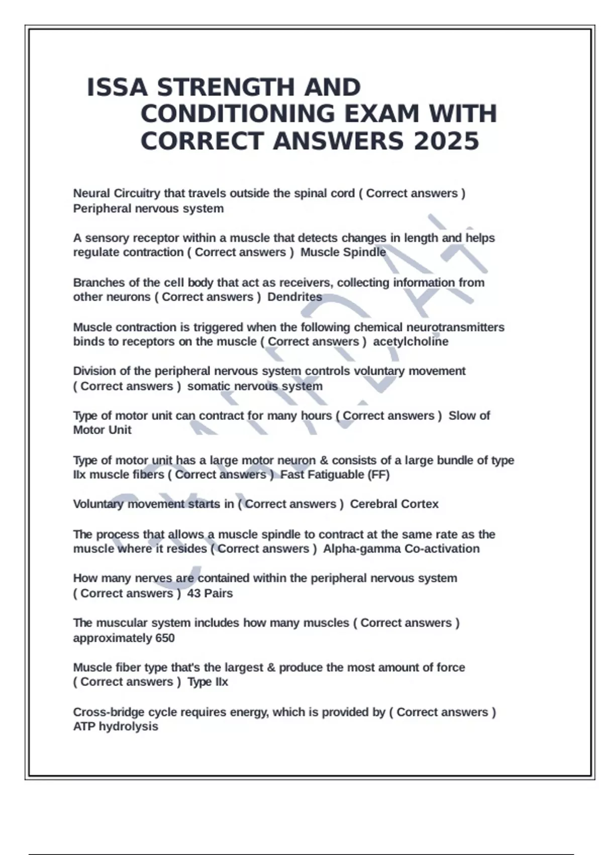 ISSA STRENGTH AND CONDITIONING EXAM WITH CORRECT ANSWERS 2025