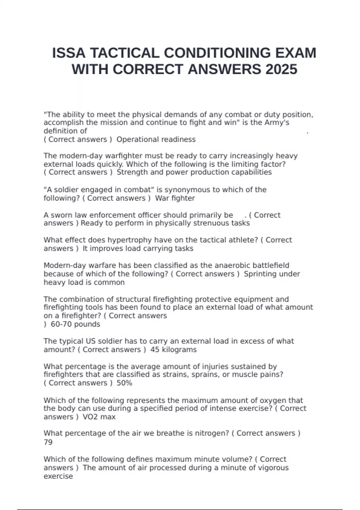 ISSA TACTICAL CONDITIONING EXAM WITH CORRECT ANSWERS 2025
