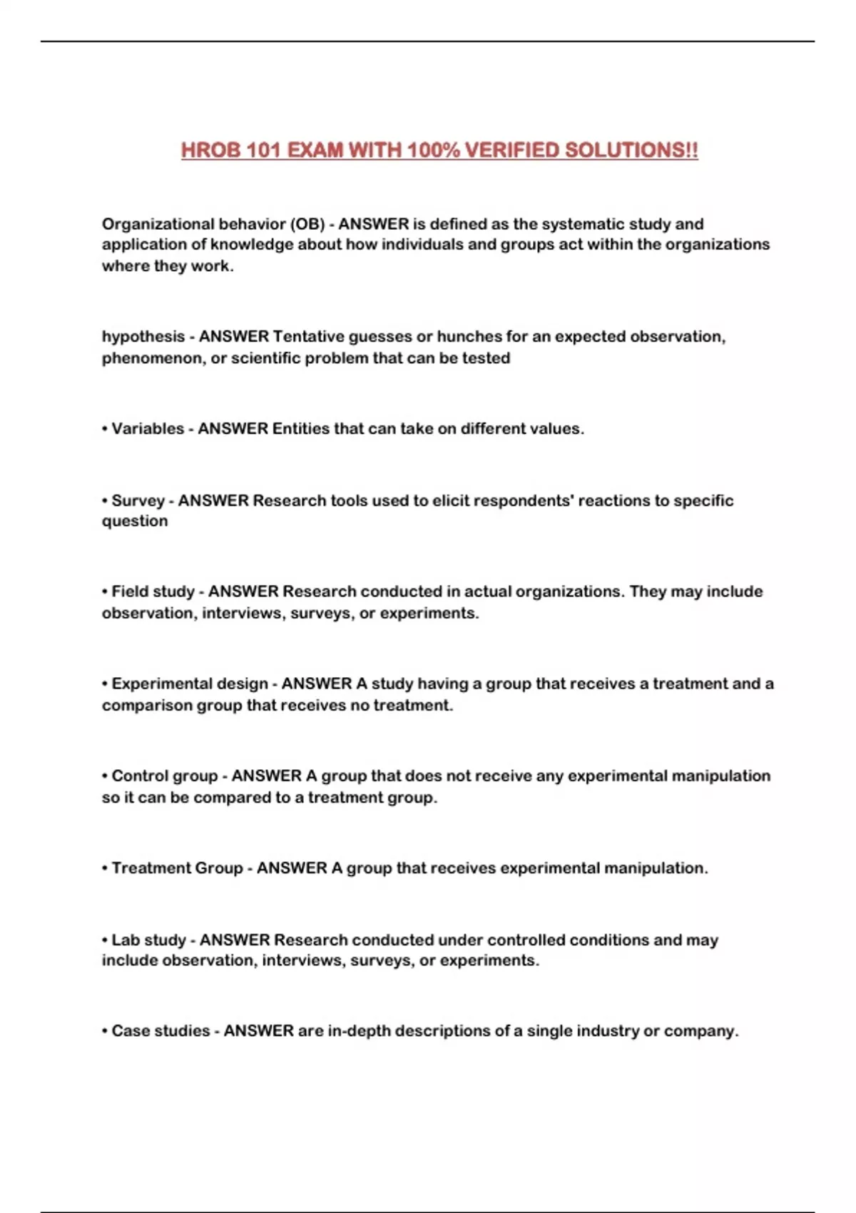 HROB 101 EXAM WITH 100% VERIFIED SOLUTIONS!!