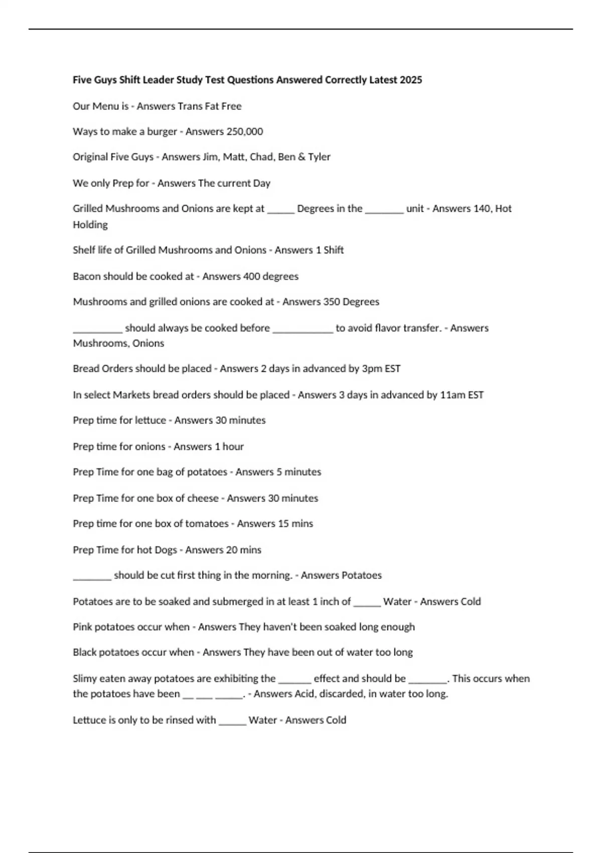 Prep time for onions - Answers 1 hour