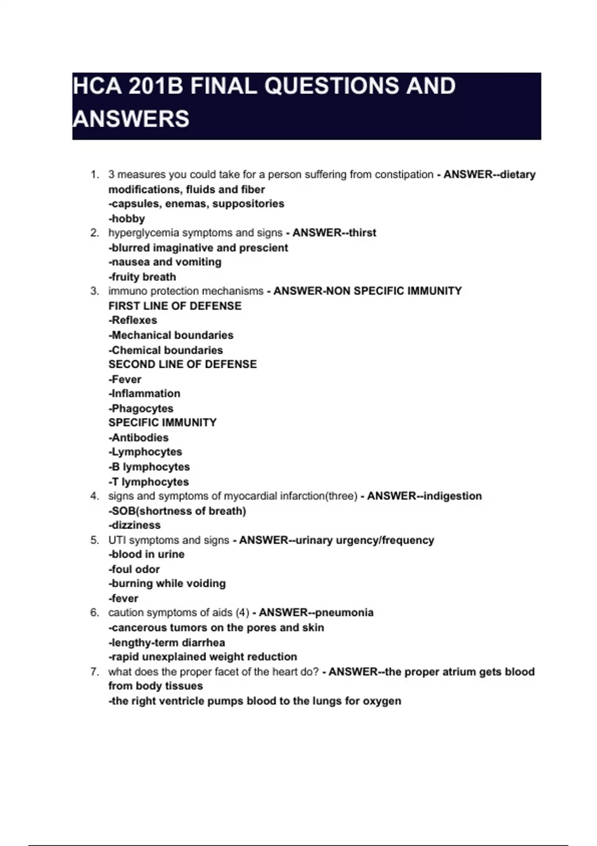 HCA 201B FINAL QUESTIONS AND