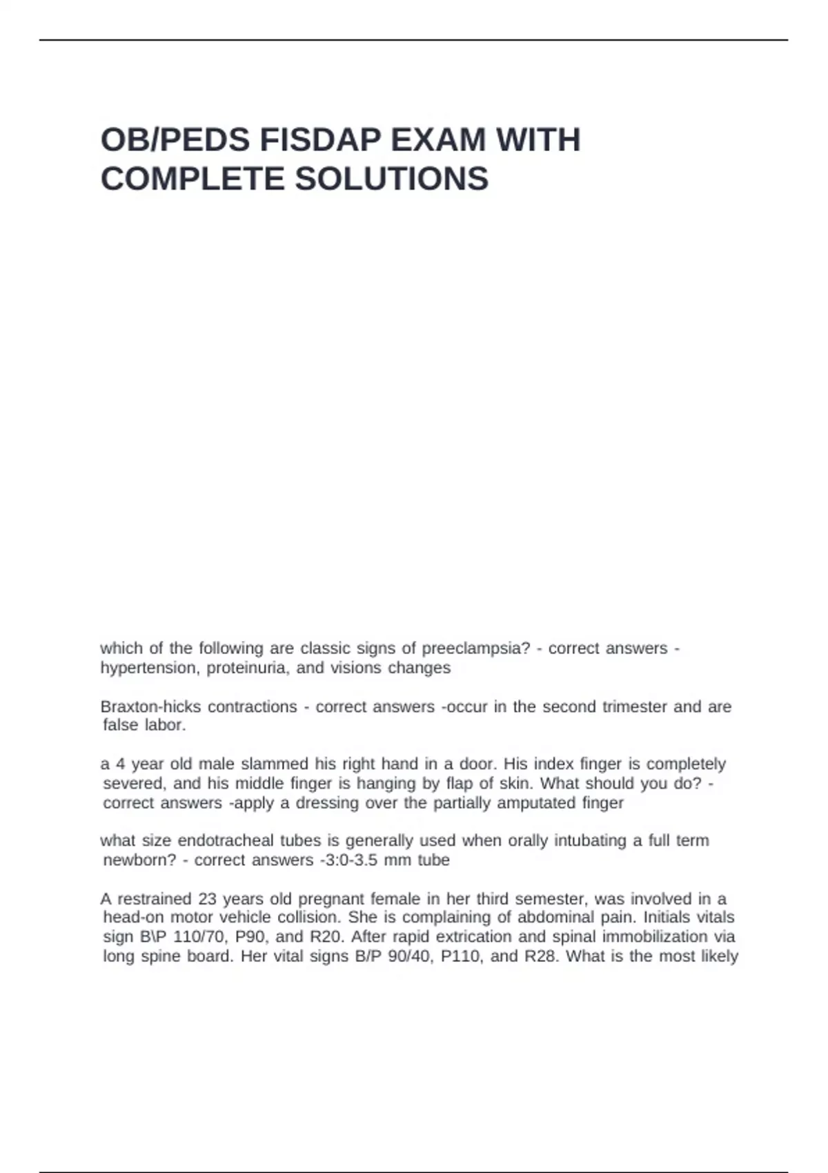 OB/PEDS FISDAP EXAM WITH