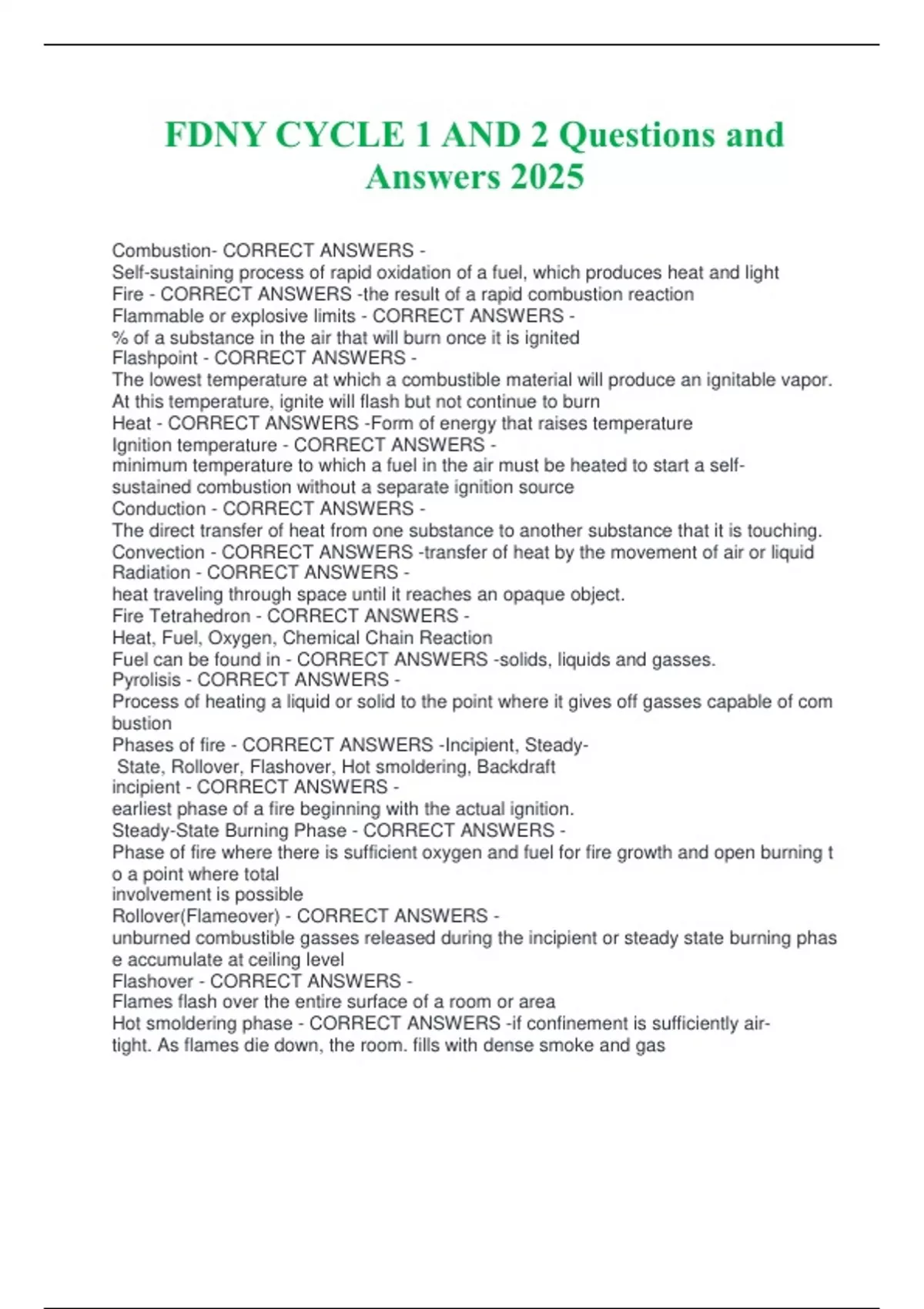 FDNY CYCLE 1 AND 2 Questions and