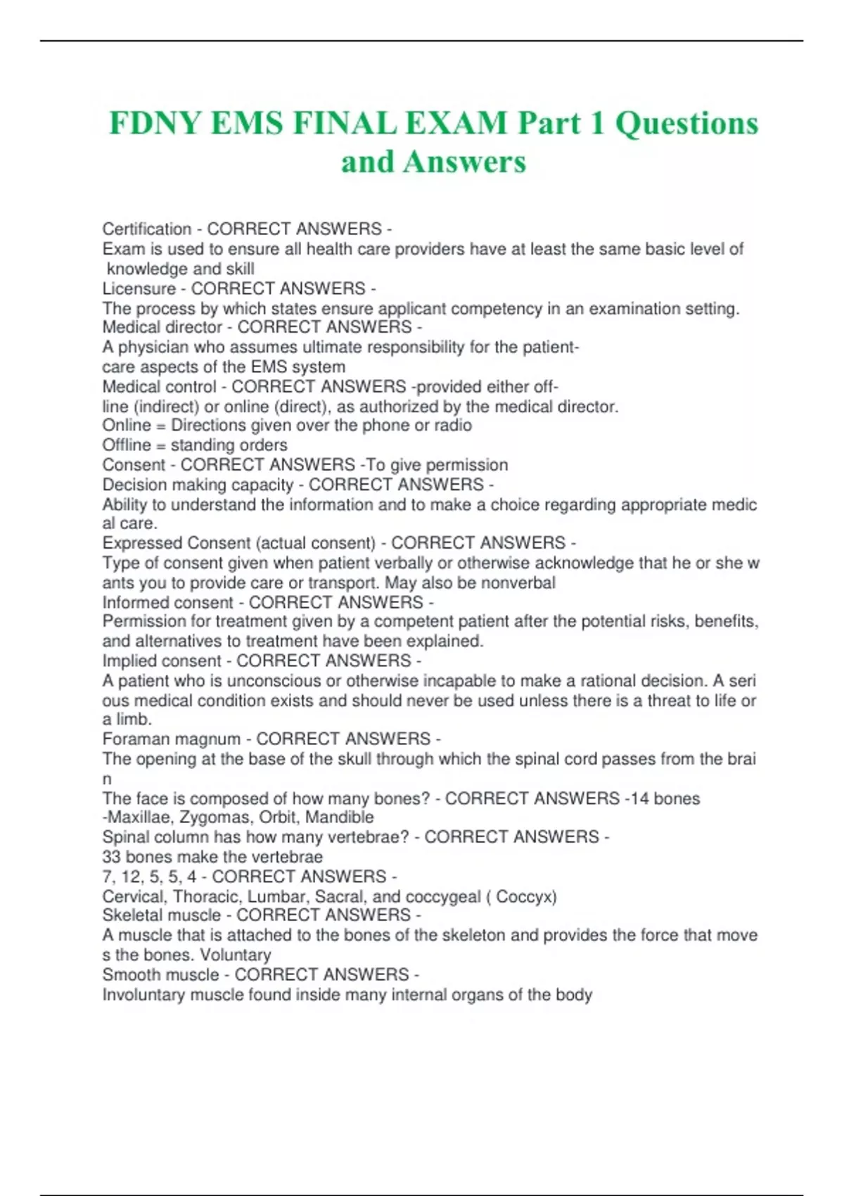 FDNY EMS FINAL EXAM Part 1 Questions and Answers