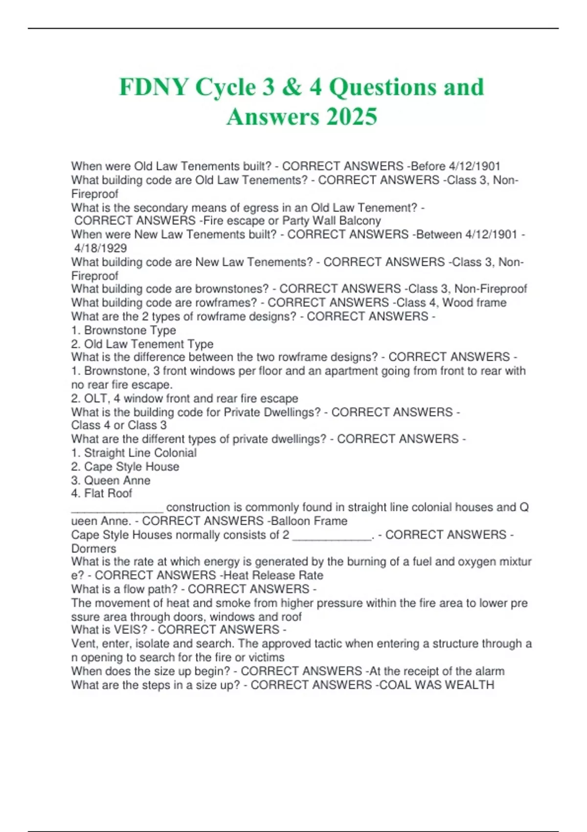 FDNY Cycle 3 & 4 Questions and Answers 2025